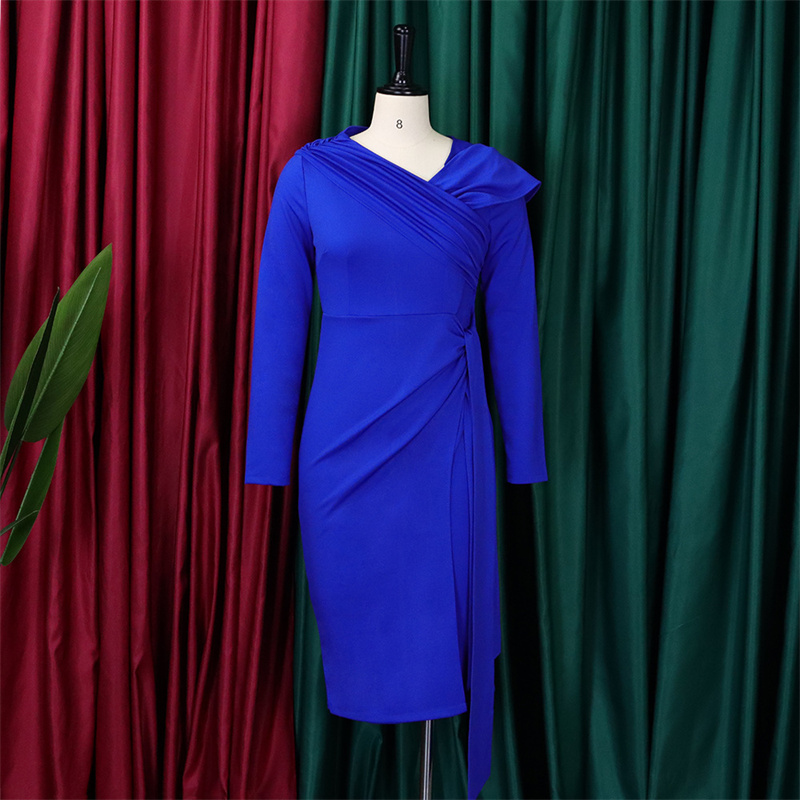 Pattern : Solid ColorSkirt Length : Mid SkirtSleeve Type : Regular SleeveSleeve Length : Long SleeveWaist Type : High WaistMain Fabric Composition : Polyester Fiber (Polyester)