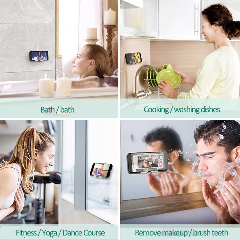 Features: 1. Universal for mobile phones/ tablets: Suitable for mobile phones/ tablets within 4-12 inches. 2. Multi-scenario application: Bathroom, kitchen, bedroom, gym and other portable installations. 3. Multi-angle arbitrary rotation.: Left and right angles can be adjusted by 20° -25°, up and down angles can be adjusted by 20° -25°. 4. One thing and two…