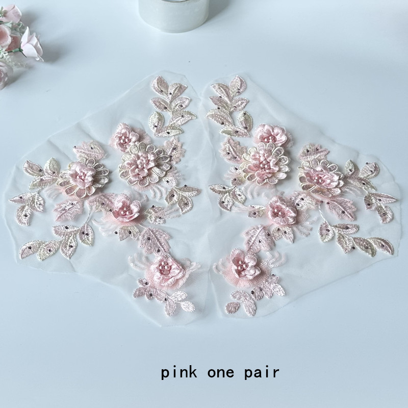 Product Description:Embroidered lace and stickers.Beautiful and elegant.Very suitable for wedding accessories, bridal headwear, formal dress making, home decoration, etc.High density flower embroidery stickers have a soft texture and require needle stitching