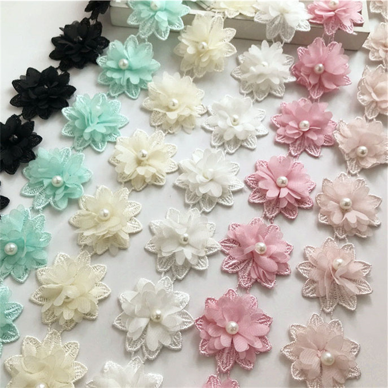 Product name: water-soluble polyester laceMaterial: polyester silk/120D chiffon, imitation pearlColors: white, black, lake green, pink, light pink, apricot yellow,Size: Approximately 5 centimeters at the widest point of the width, with approximately 16 flowers per size (subject to error)Length: 1 yard (after stretching)Scope of use: Clothing decoration, curtain fabric art, DIY handmade decoration, etc