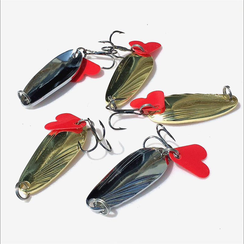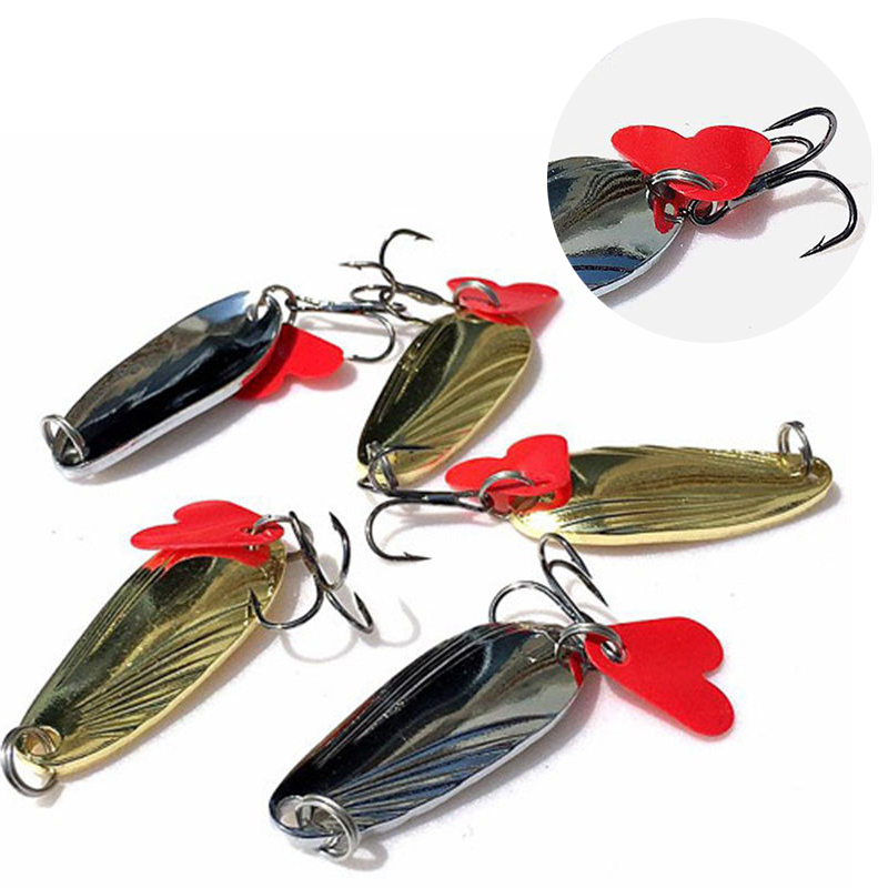 10PC 8g Shell Pattern Sequins Treble Hook Red Heart Piece Lure Bait Fishing Tackle
