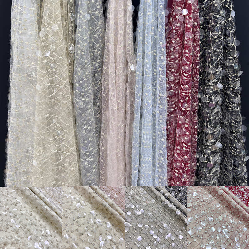 18mm Gold Thread Sequin Dress Fabric Women’s Clothing DIY Sequined Fabric