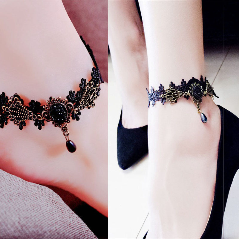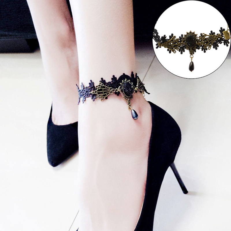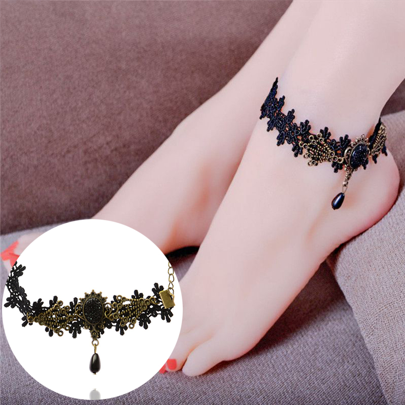 Anklets For Women Handmade Gothic Black Vintage Lace Women Anklets Diy Belt Gift Women Accessories Gothic Party Jewelry