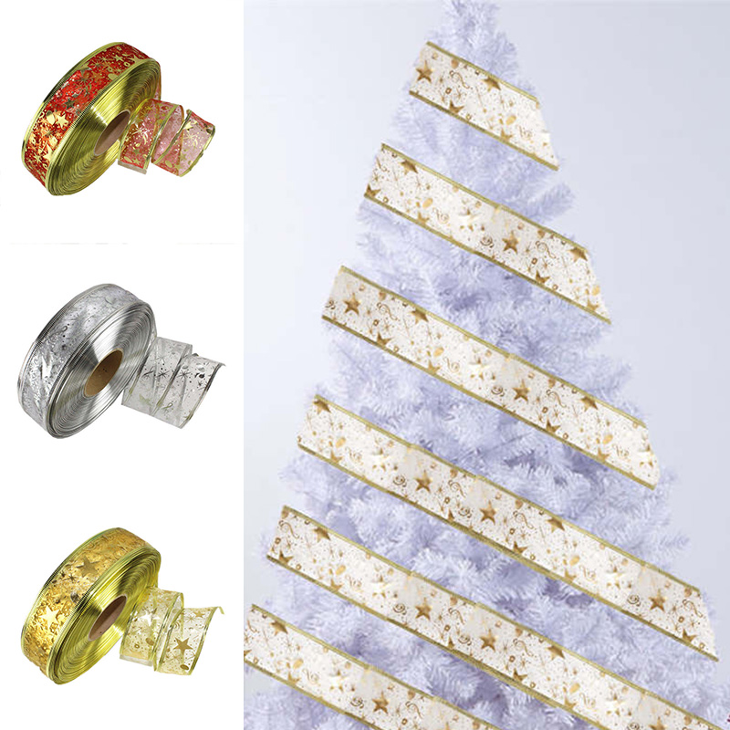2M Gold Ribbon Five-Pointed Star Ribbon Christmas Tree Decora Pendant Christmas Gift Packaging Ribbon