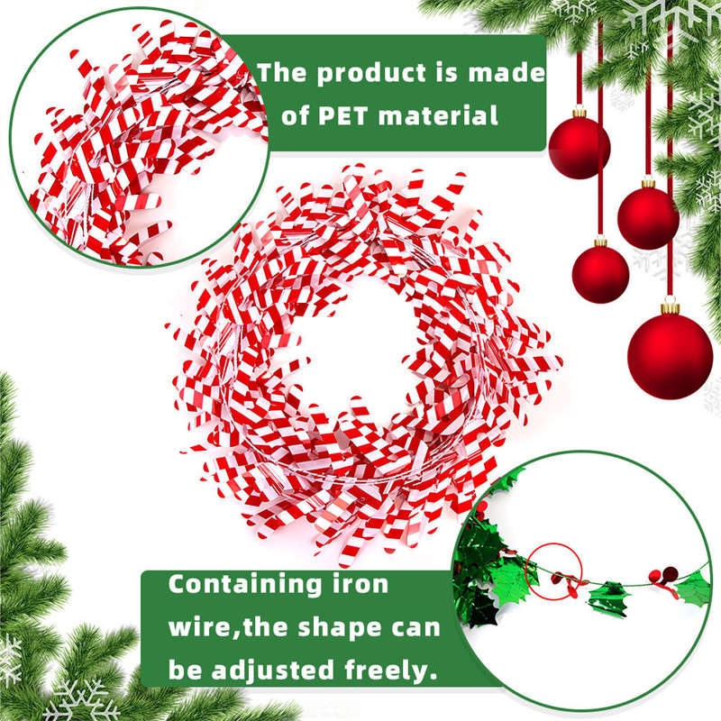 2PC Christmas Decor Garland Snowflake Crutch Color Stripes Iron Wire Christmas Tree Decor Metal Wire