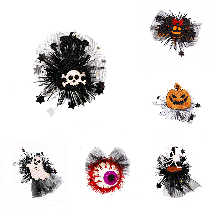 2PC Halloween Hairpin Headdress Children’s Party Decor Spider Pumpkin Mesh Ornament