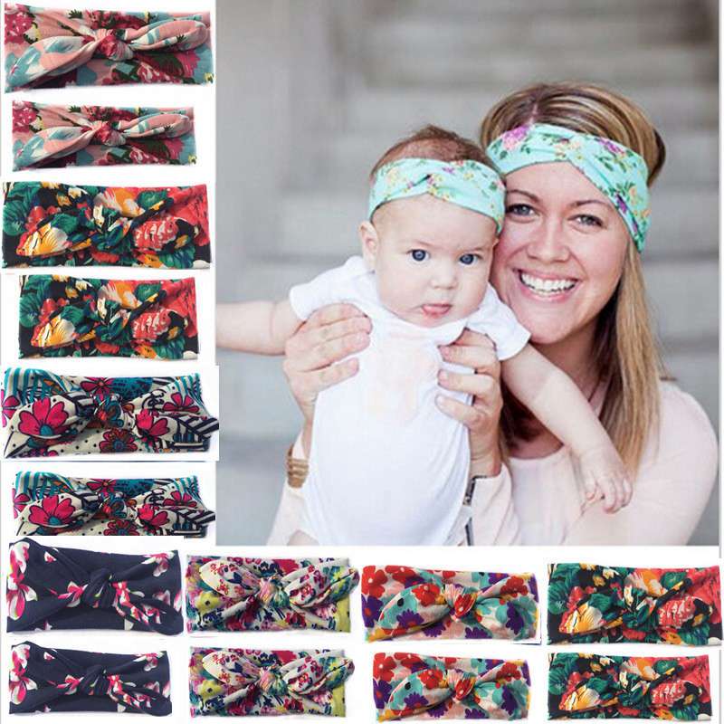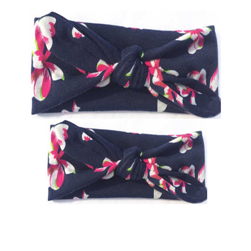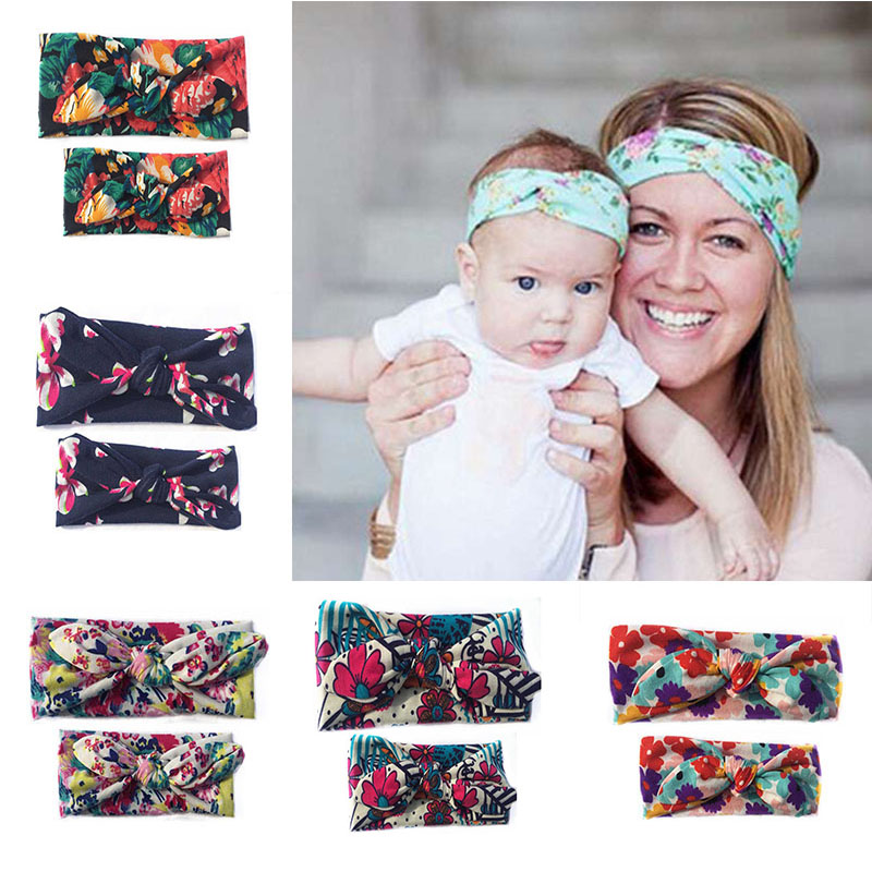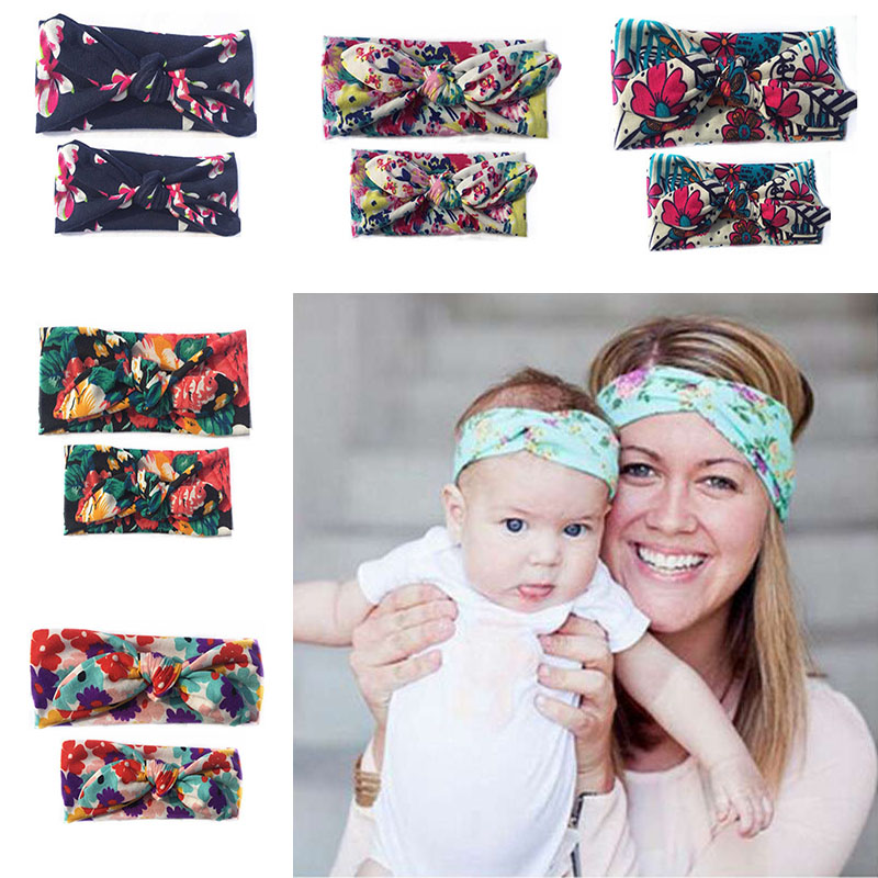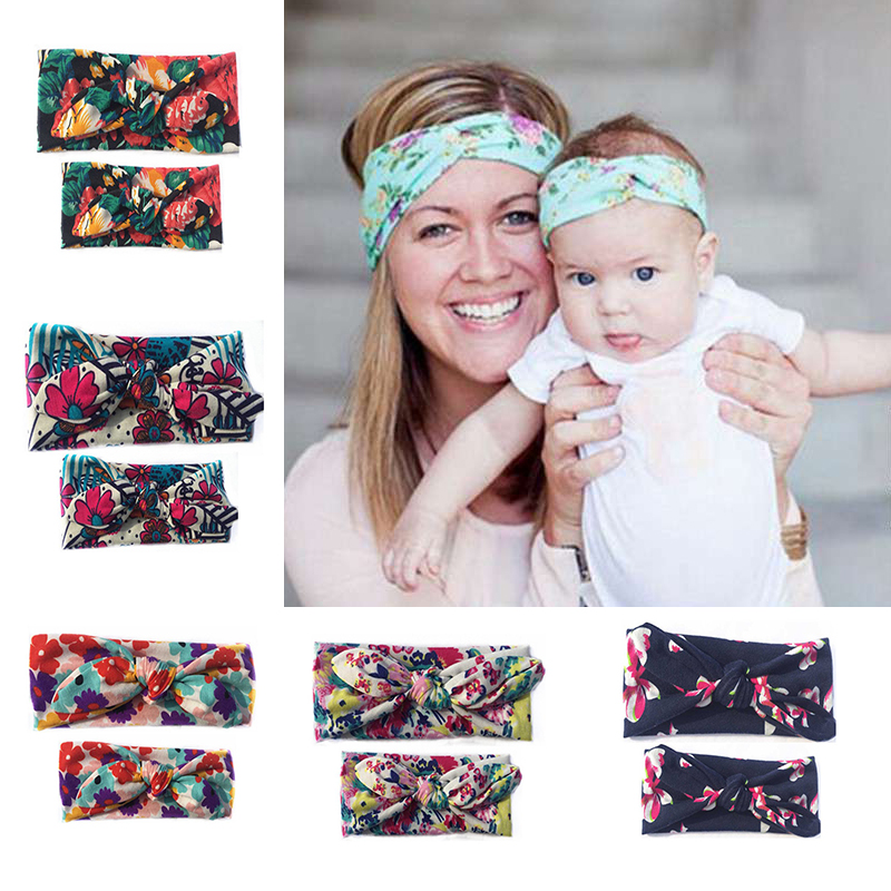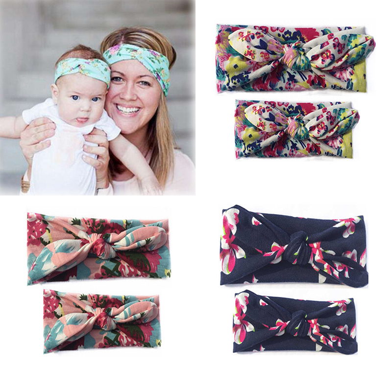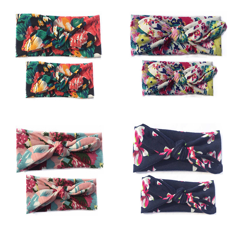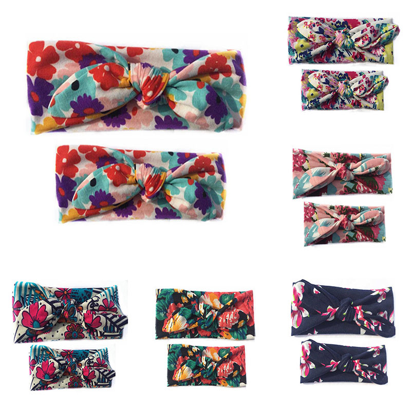 2Pcs/Set Mom & Baby Headbands Mother Baby Turban Mom Daughter Rabbit Ears Hairband Floral Print Parent-Child Hair Accessories