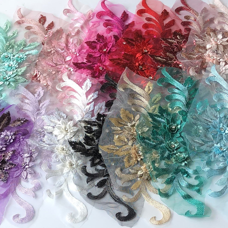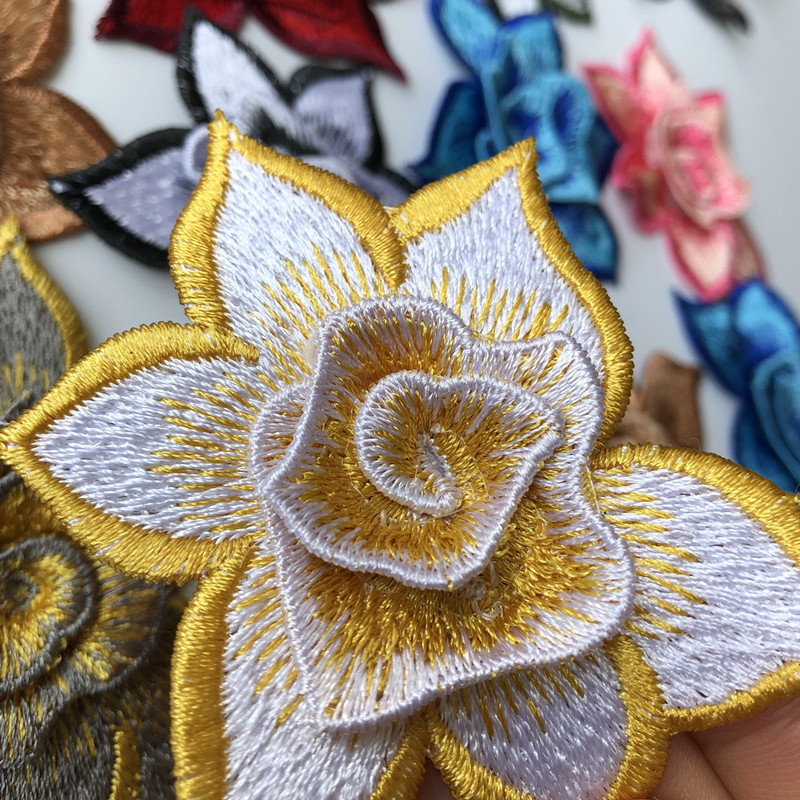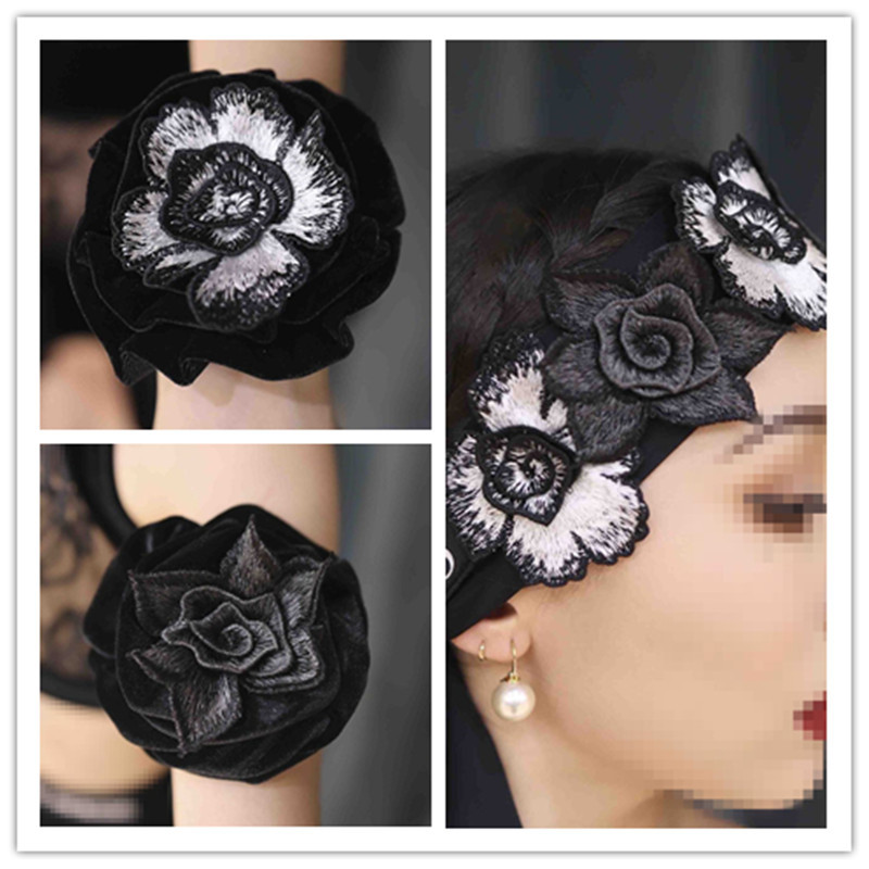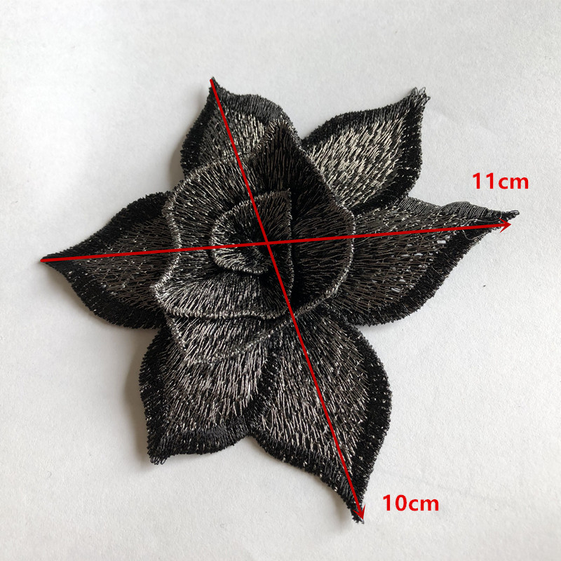 5pc Black Gray Three-Dimensional Flower Embroidered Cloth Stickers Water-Soluble Embroidery Patch Latin Clothes Skirt Hair Band Decorative Accessories Diy