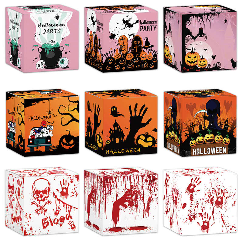 6PC Halloween Horror Decor Props Candy Snack Packaging Paper Box Scene Layout Party Supplies