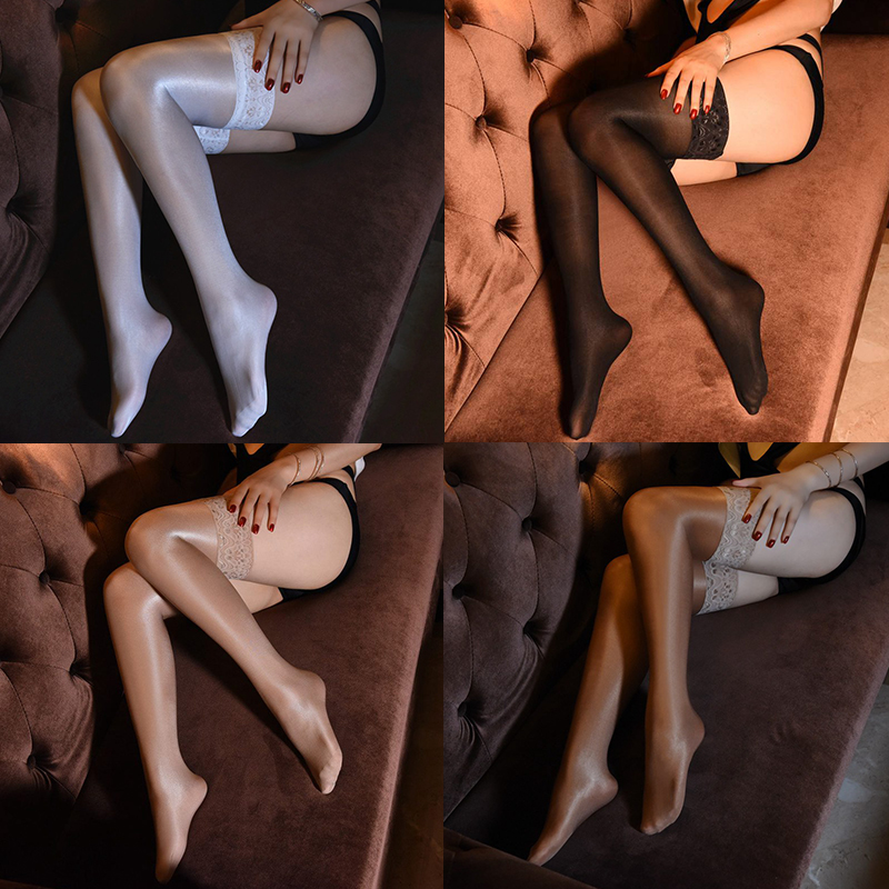 70D Shebin Stockings Lace Edge Sexy Lingerie Women’s Silicone Non-Slip Transparent Oily Long Sexy Stockings