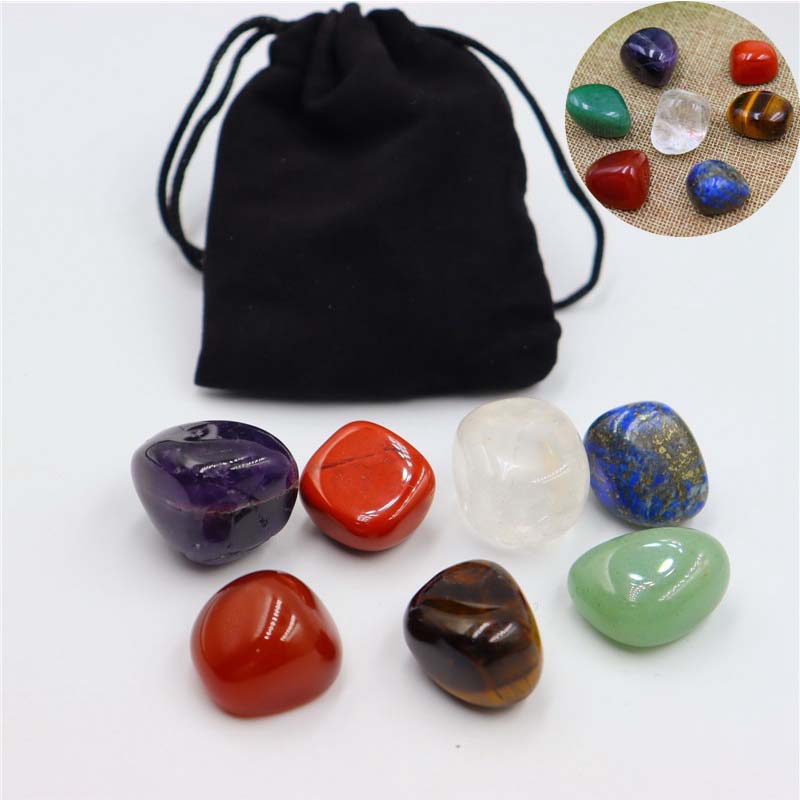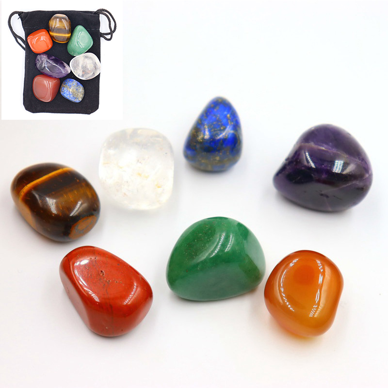 7pcs/Set Reiki Natural Stone Tumbled stone Irregular Polishing Rock Quartz Yoga Energy Bead For Chakra Healing Decoration