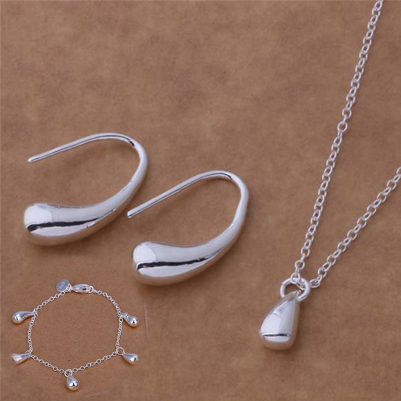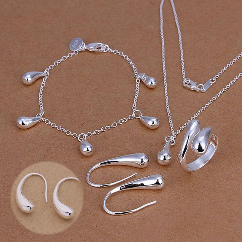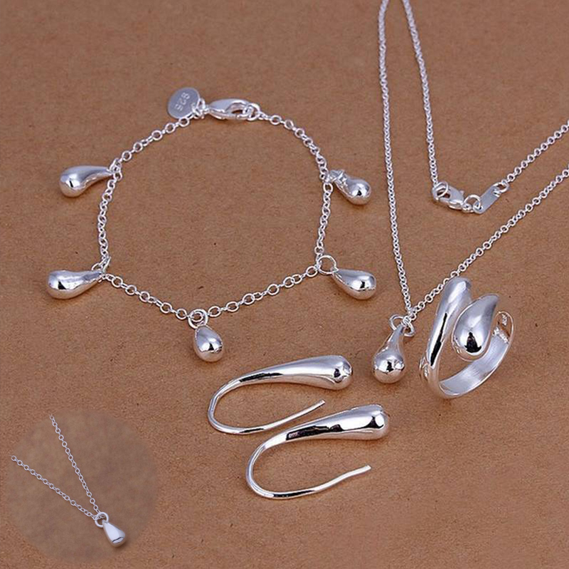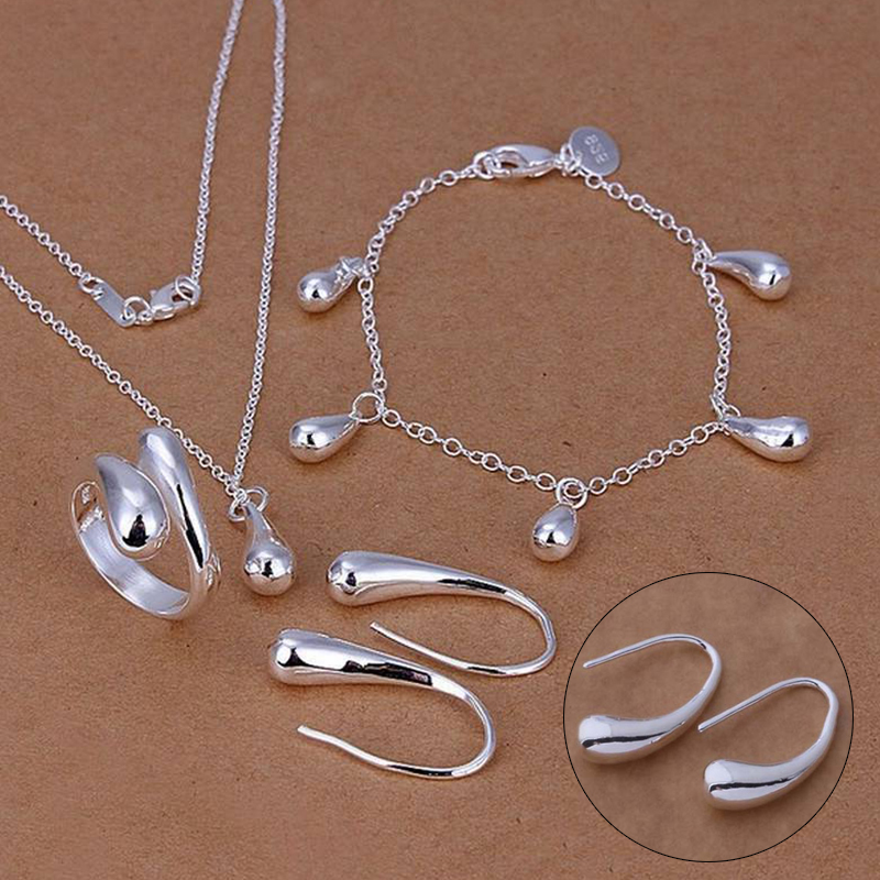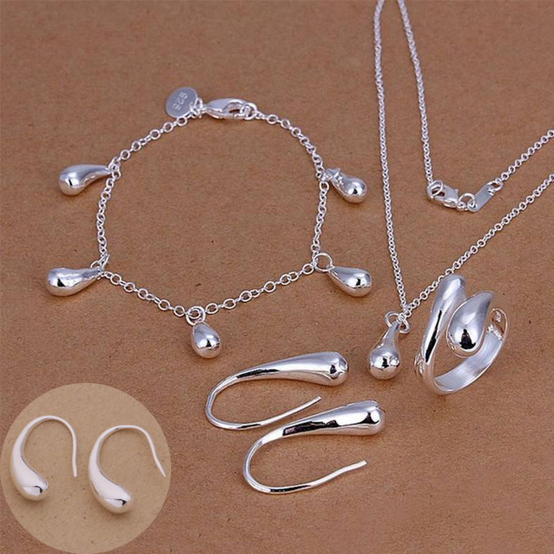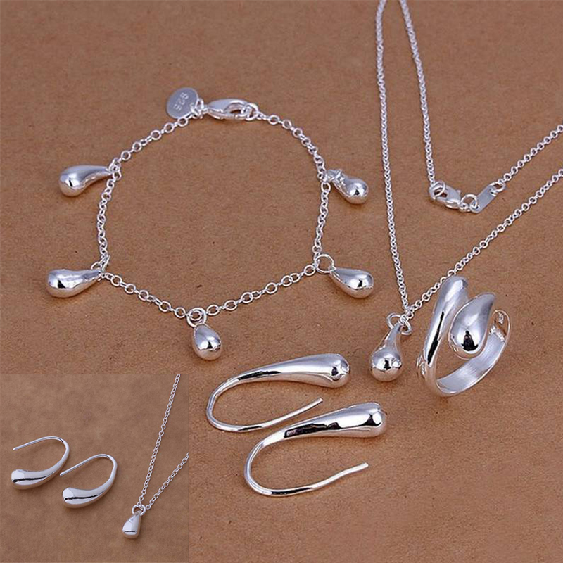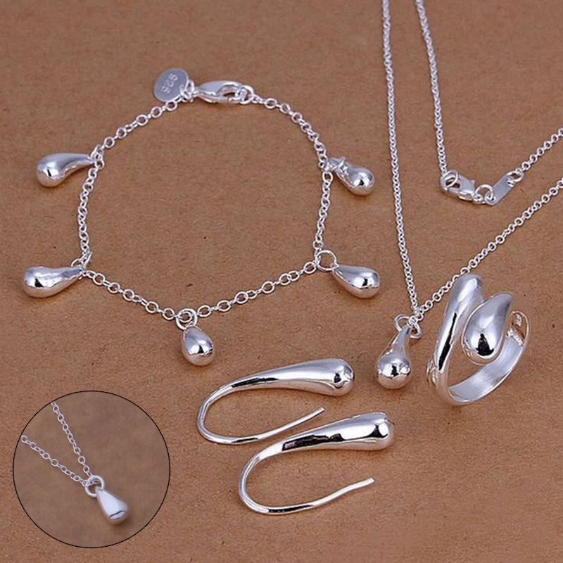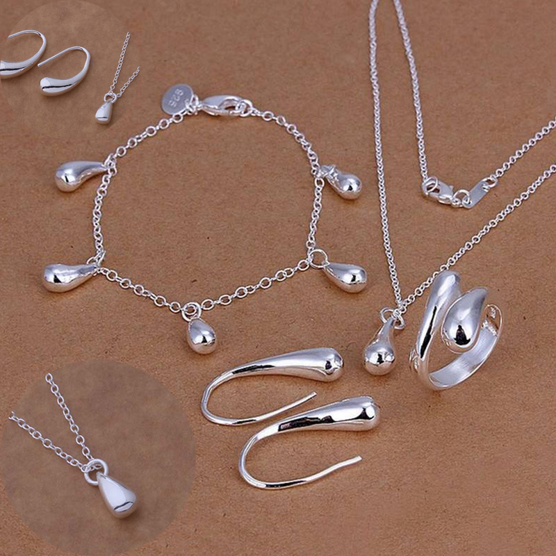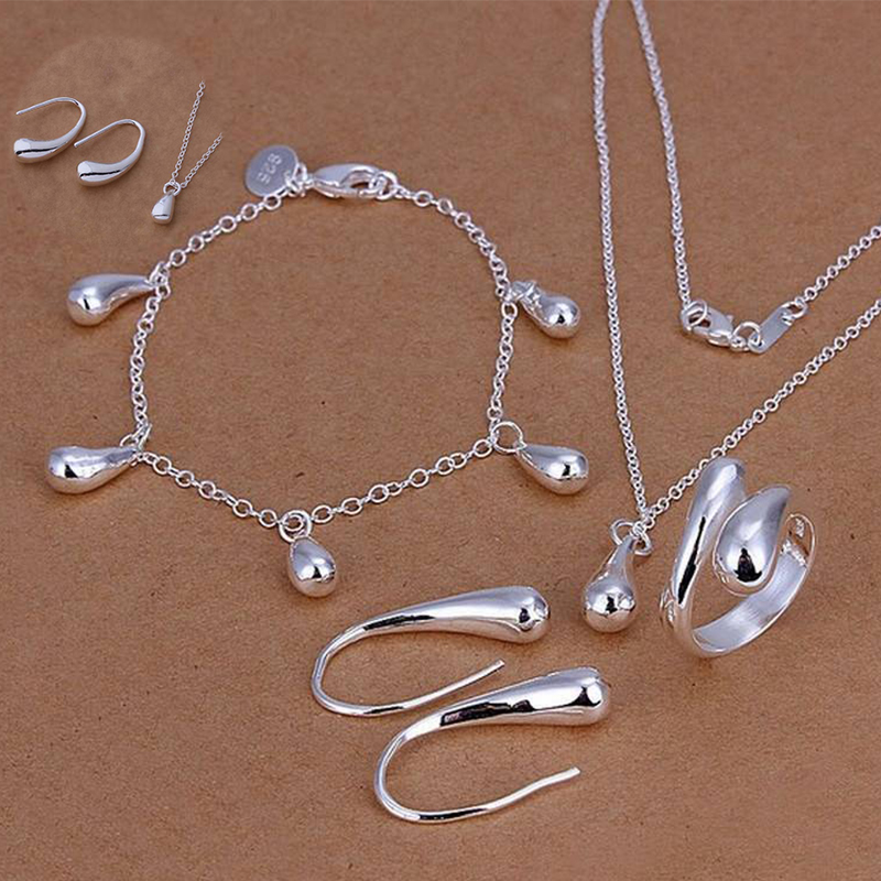 925 Silver Wedding women high-quality classic drop bracelets earrings necklace rings fashion jewelry sets S223