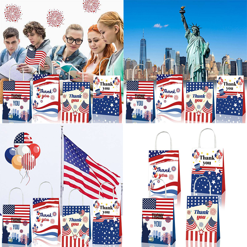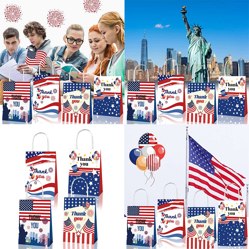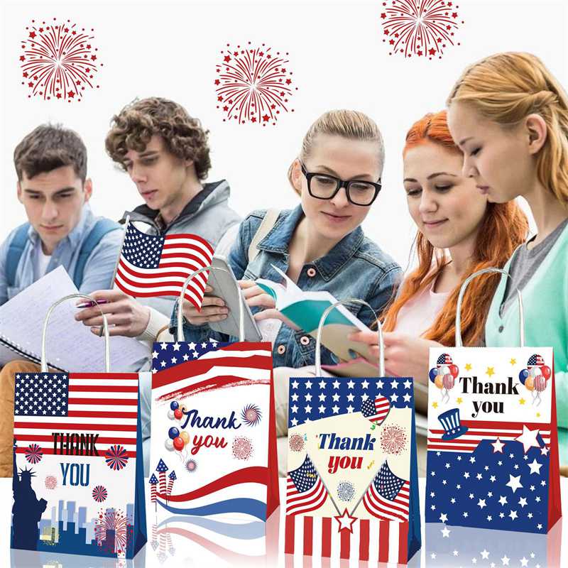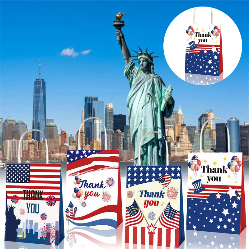 Bd124 Amazon US Independence Day Military Veterans Thankyou Party Gift Kraft Paper Portable Paper Bag