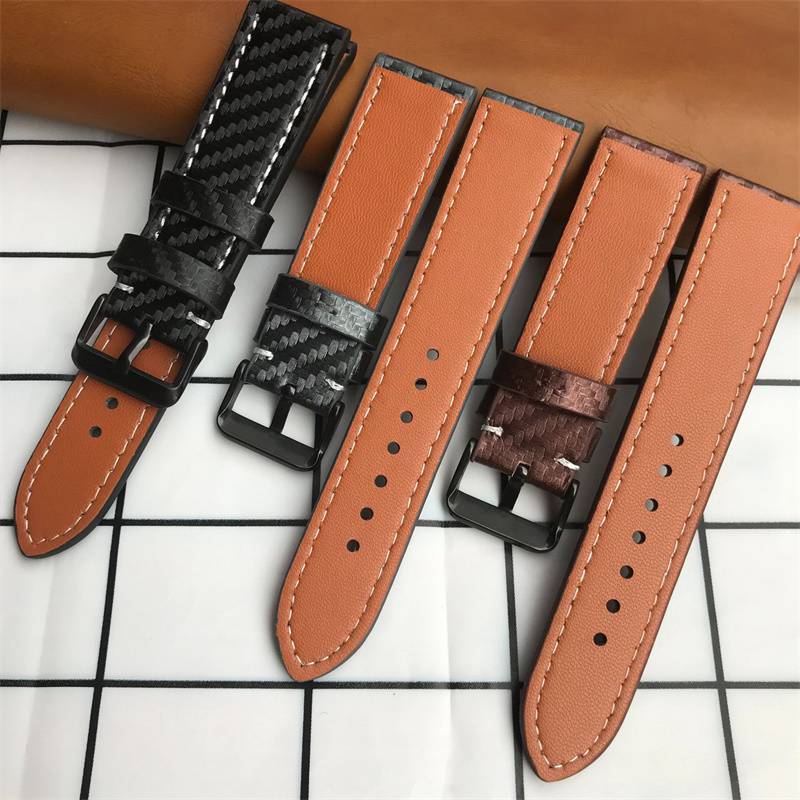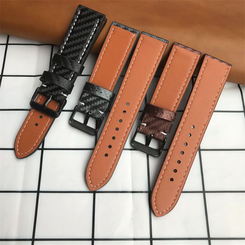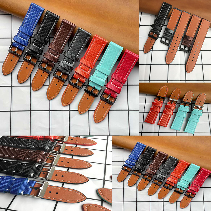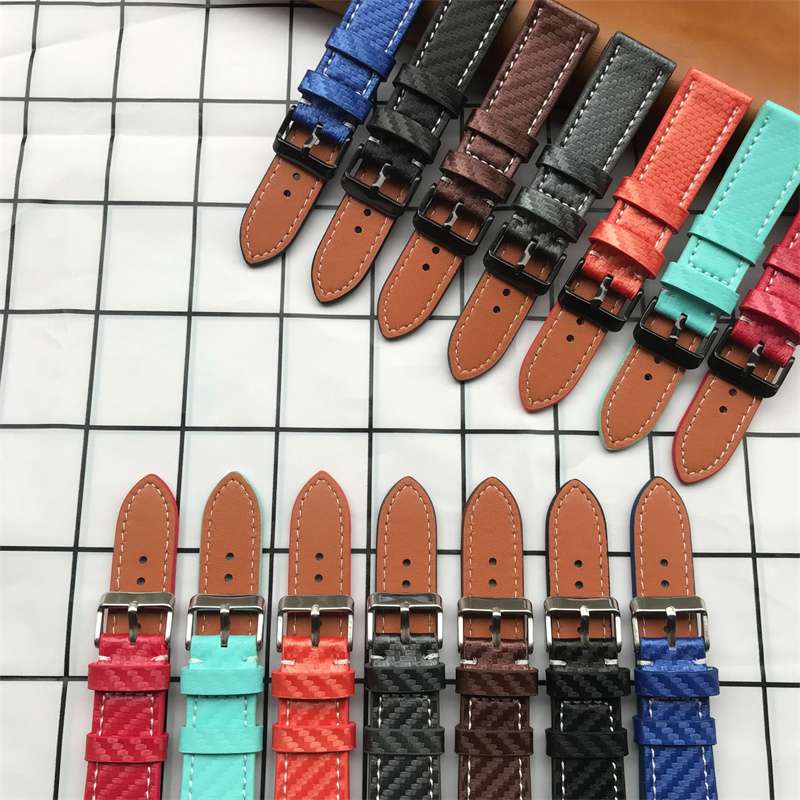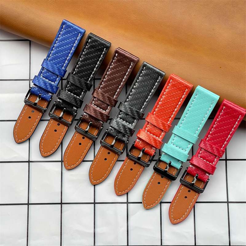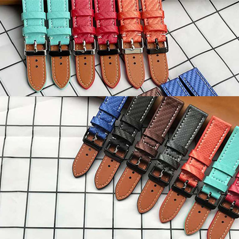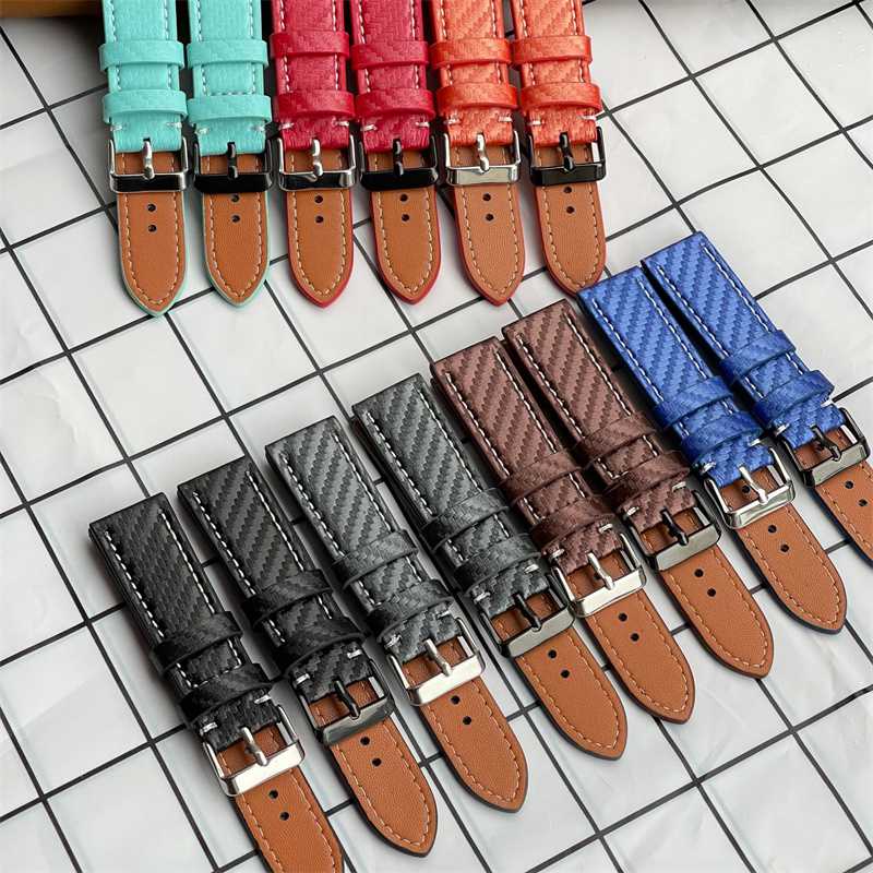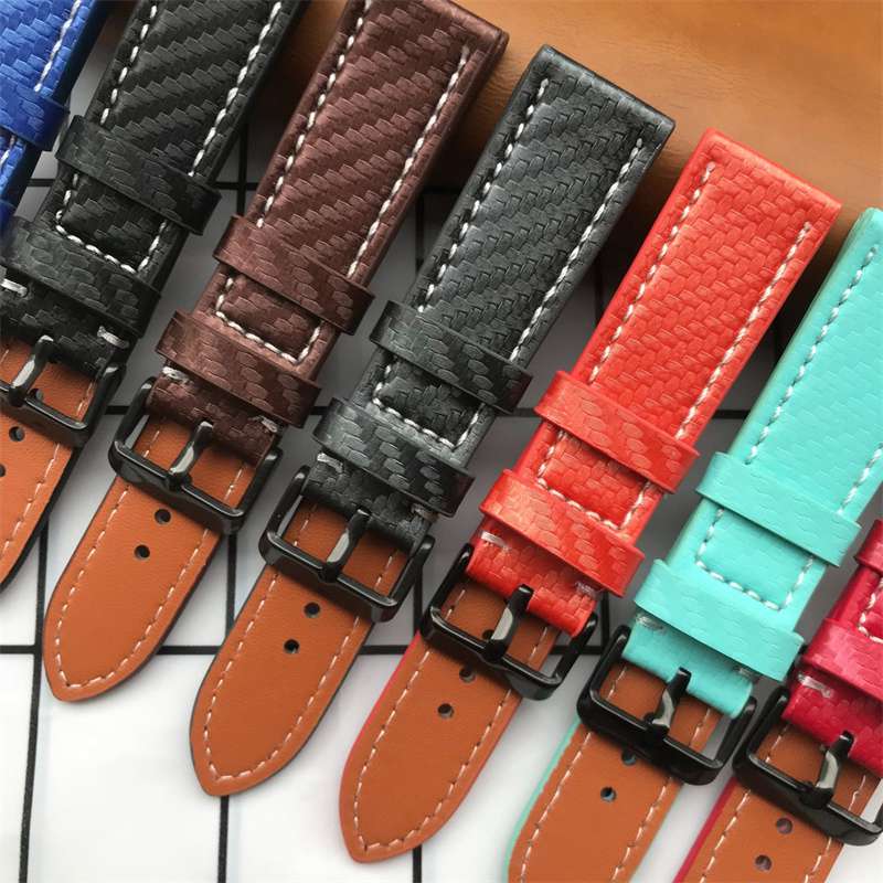 Carbon Fiber Texture Leather Strap Soft Bracelet Accessories Factory in Stock Color Multicolor Watch Strap 18-24M