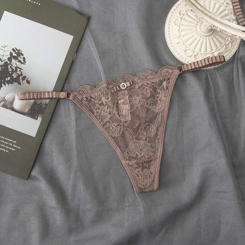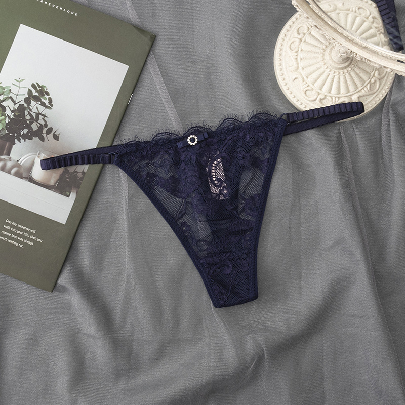 Cross-Border Foreign Trade Lace T Pants Thin Strap Hollow Temptation Underwear Sexy Cotton Stall Low Waist T-Back Women’s Transparent Sexy