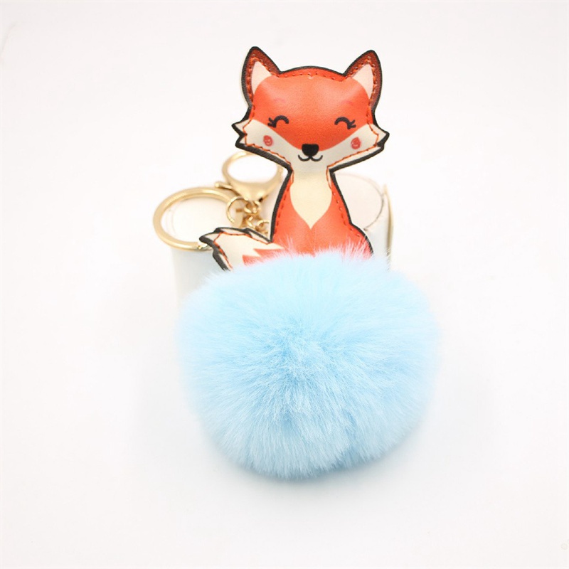 Cross-Border Leather Cute Fox Venonat Hanging Decoration Bag Accessories Customized Women’s Schoolbag Wallet Fur Ball Keychain