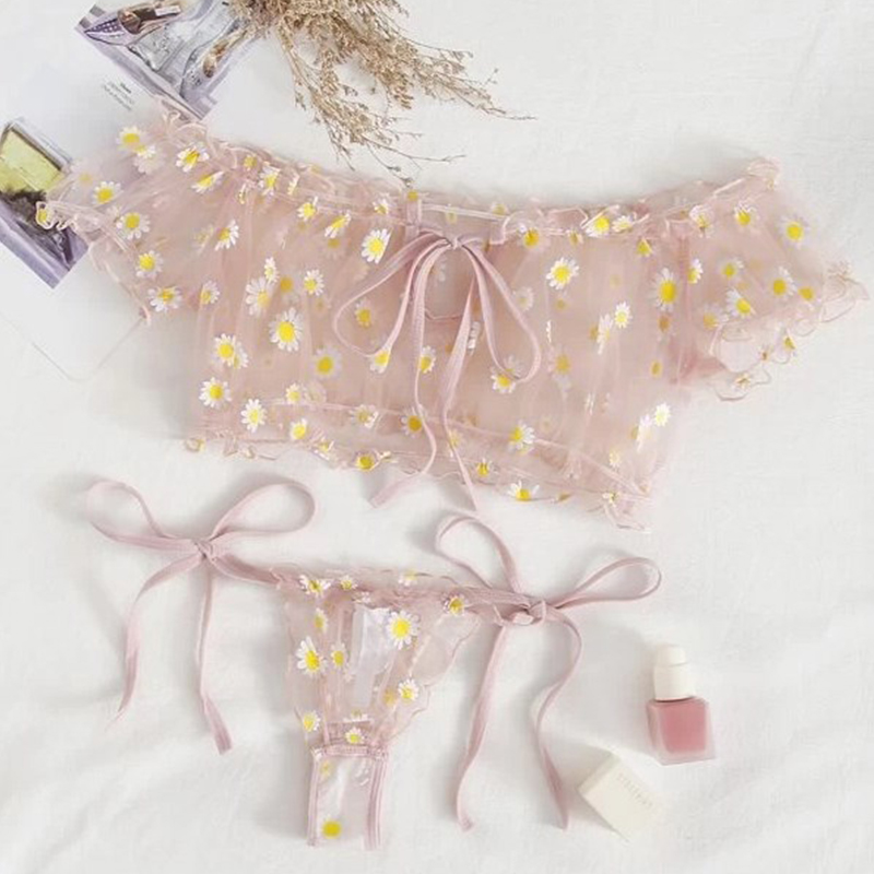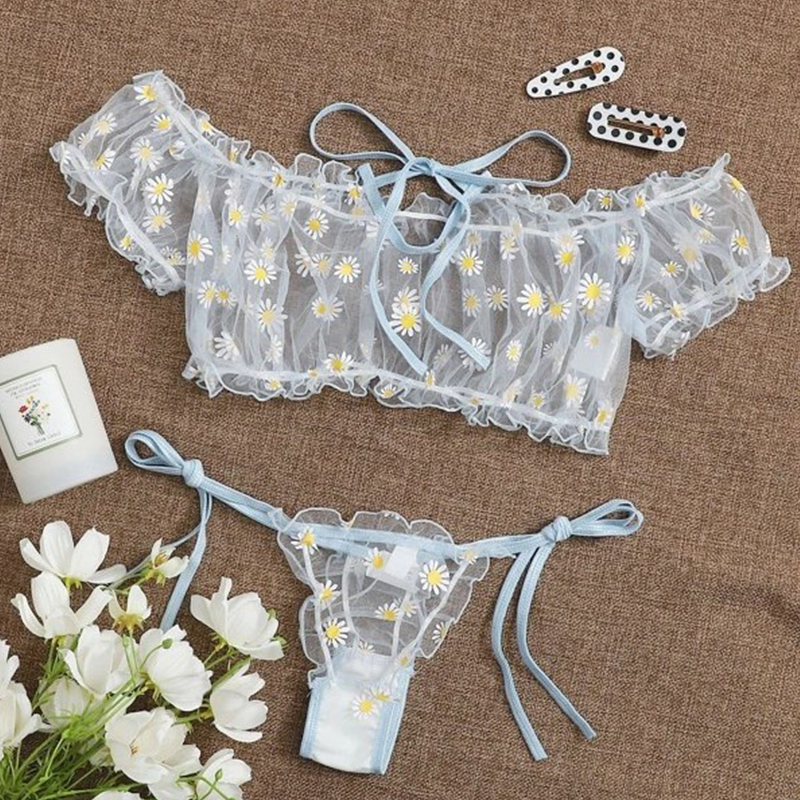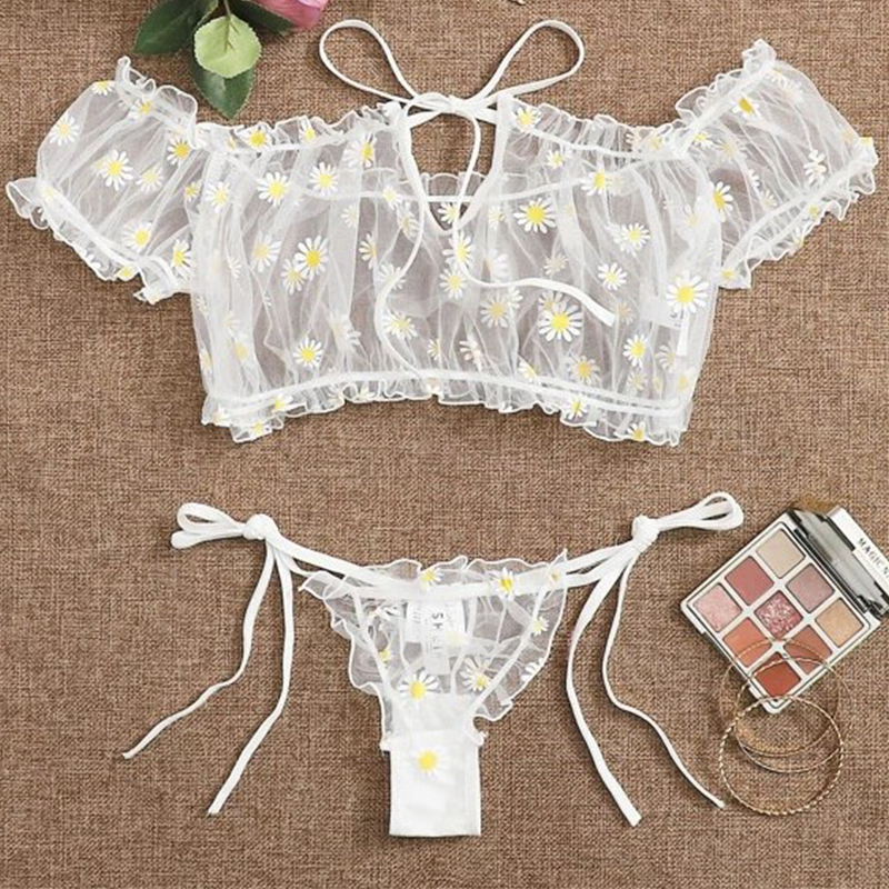 Cross-Border Supply European and American Foreign Trade Sexy Lingerie Sexy Women’s Lace See-through Three-Point Underwear Set