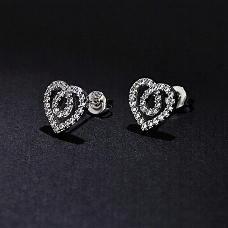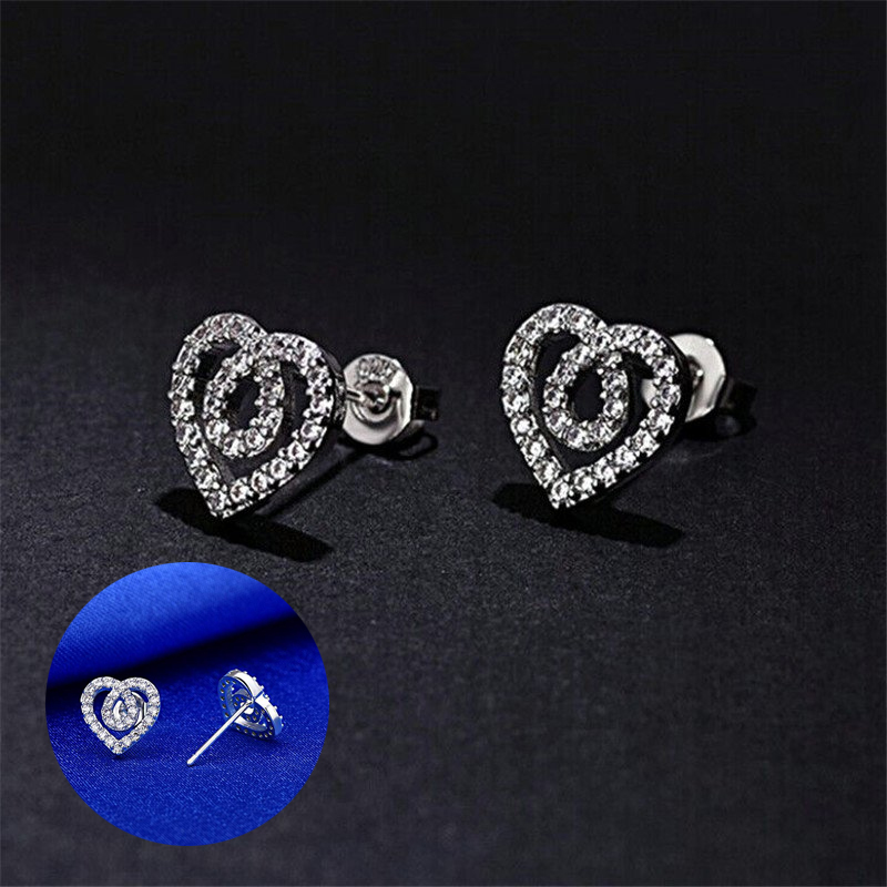 Crystal Heart Ear Stud Earrings Jewellery Women Girl Gift UK
