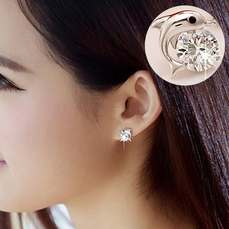 Dolphin Stone Stud Earrings Womens Girls Jewellery New UK