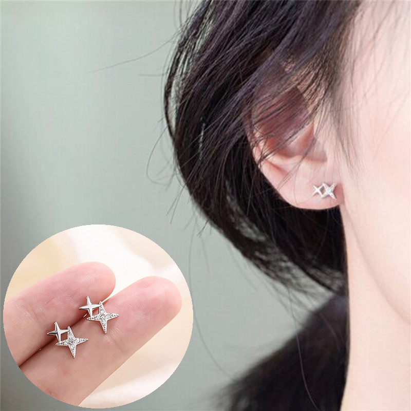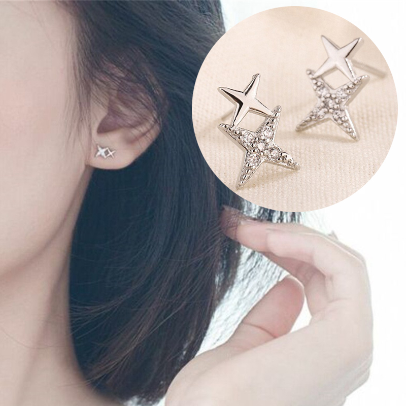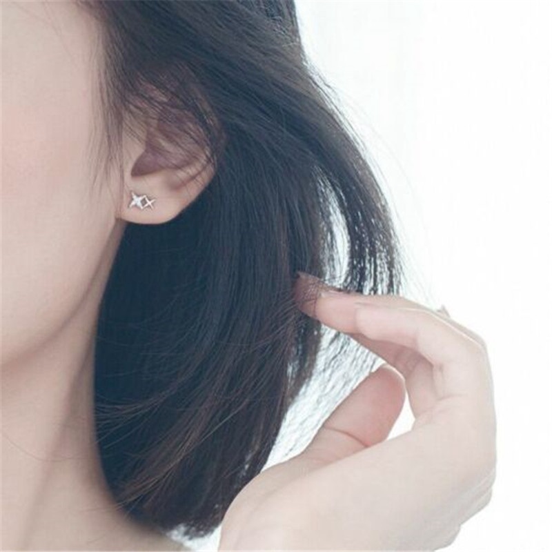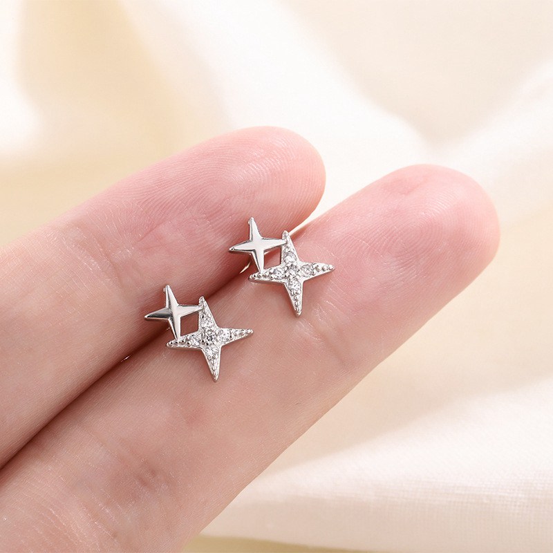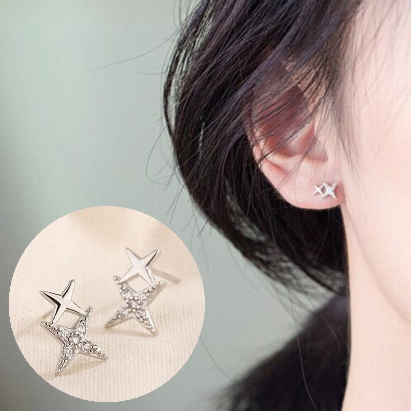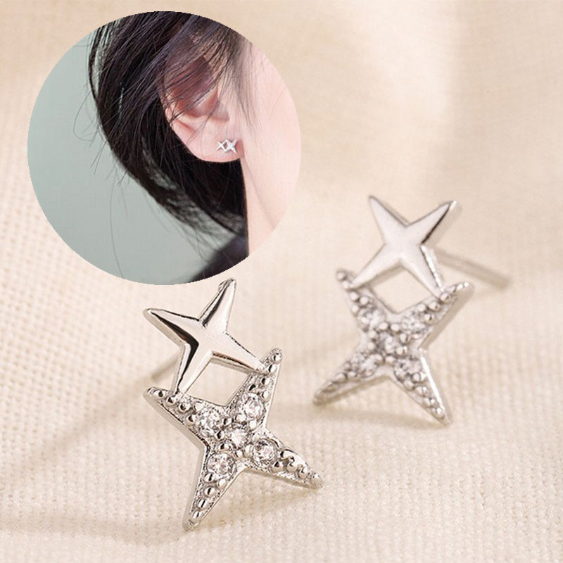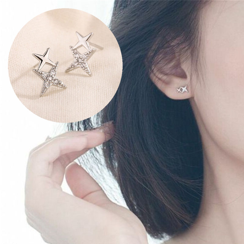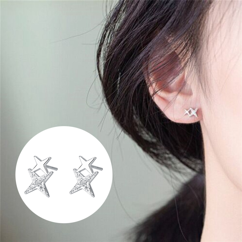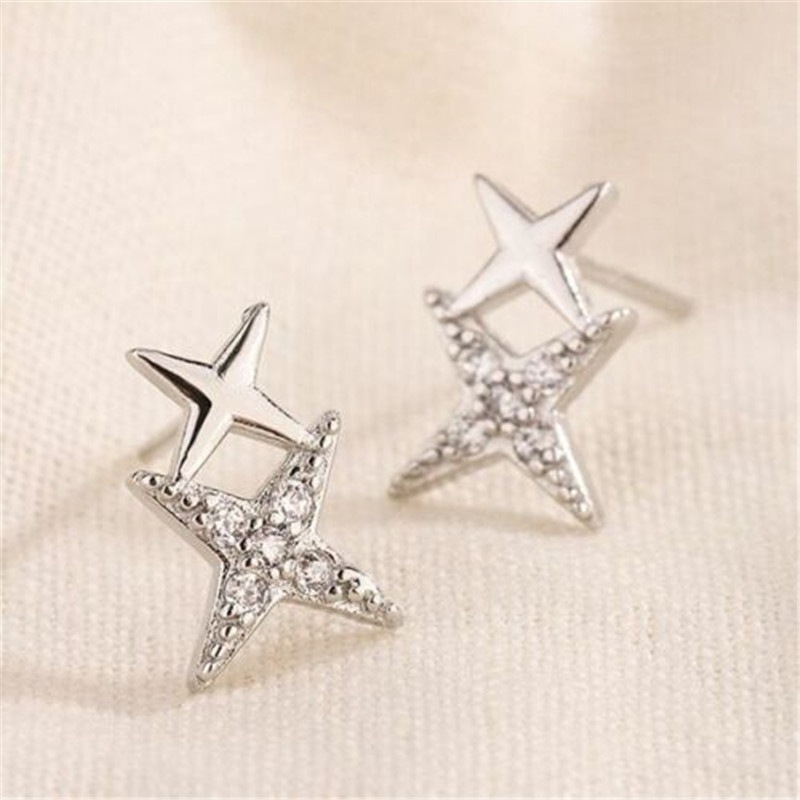 Double Star Linked Stud Earrings Womens Jewellery New UK