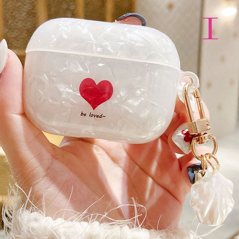 Dreamy White Glossy Shell Pearl Bracelet Keychain Earphone Soft case For Apple Airpods 1 2 Pro 3 Wireless Headset Box Cover