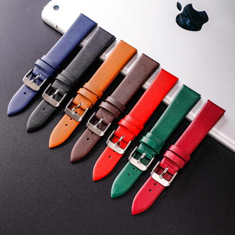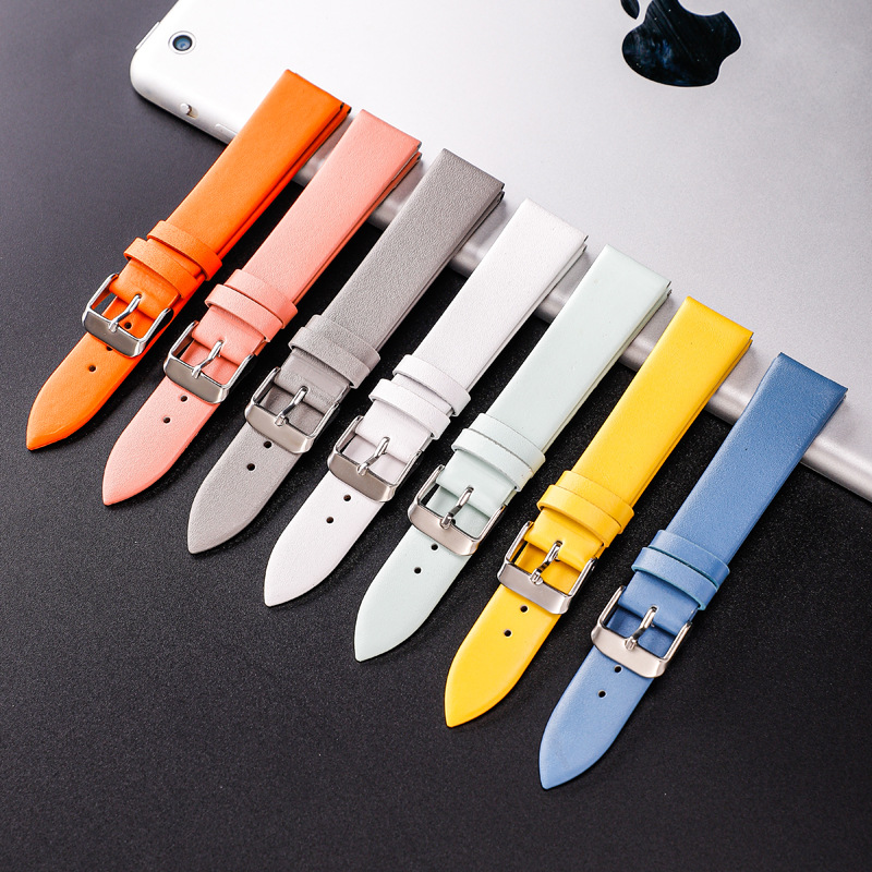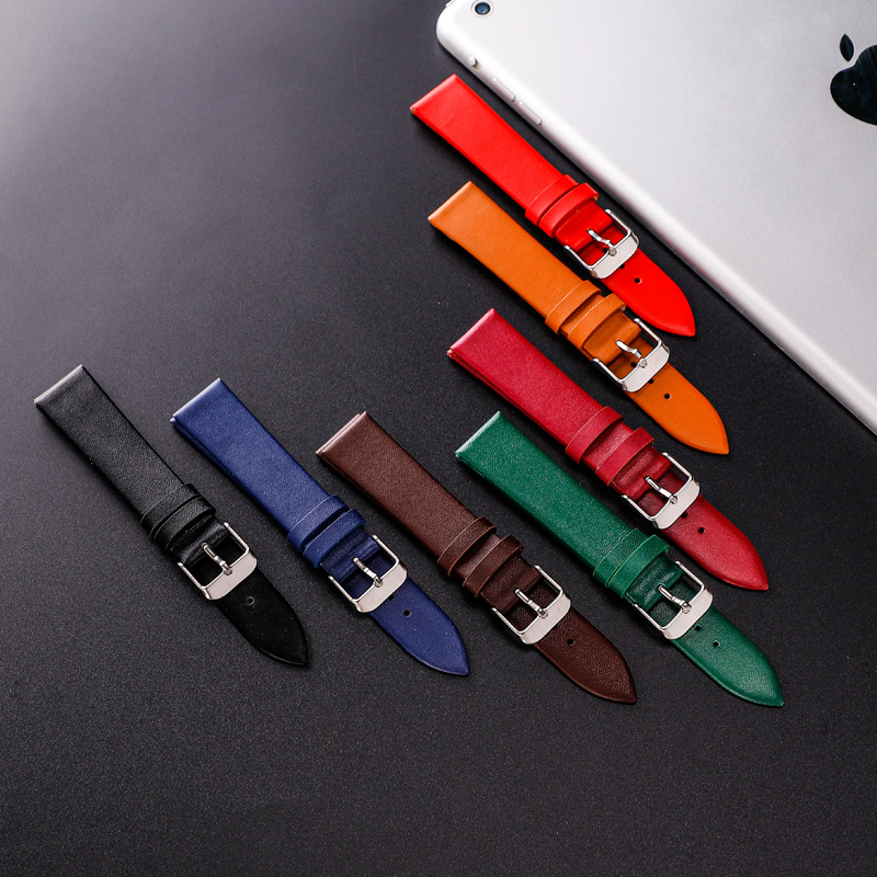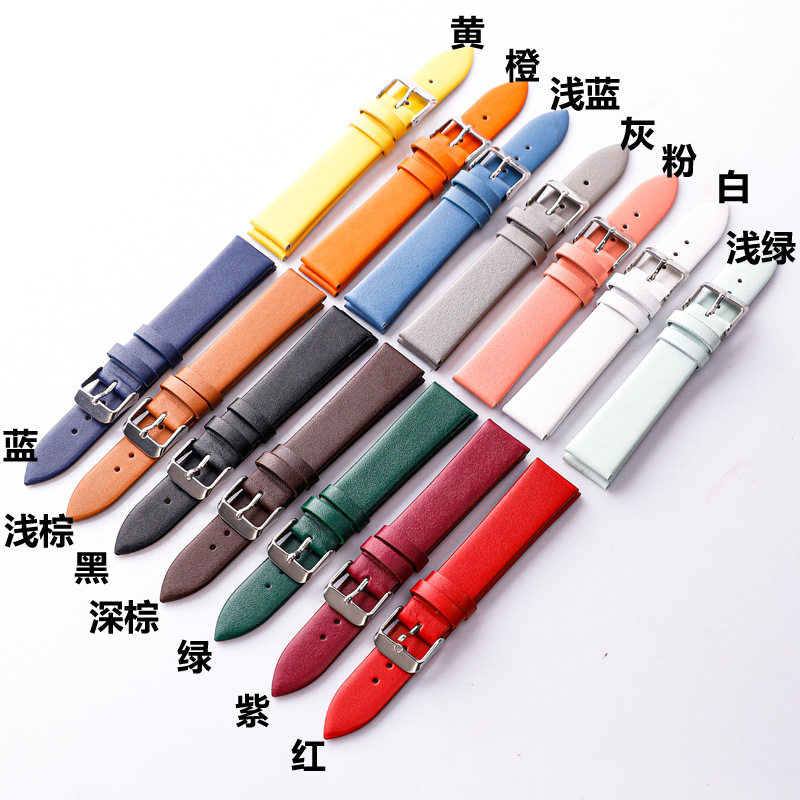 Flat Plain Weave Needle Pattern Color Leather Watch Strap Men’s and Women’s Super Book Watch Band Factory in Stock Wholesale 14 Colors Optional