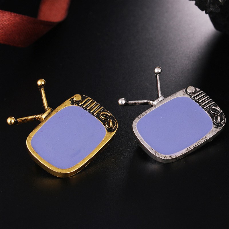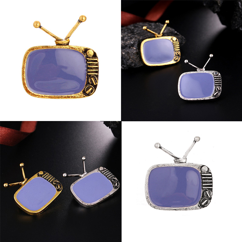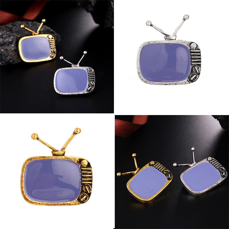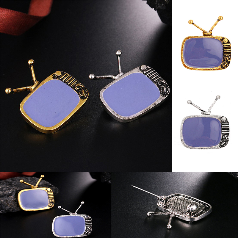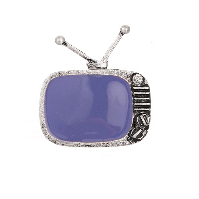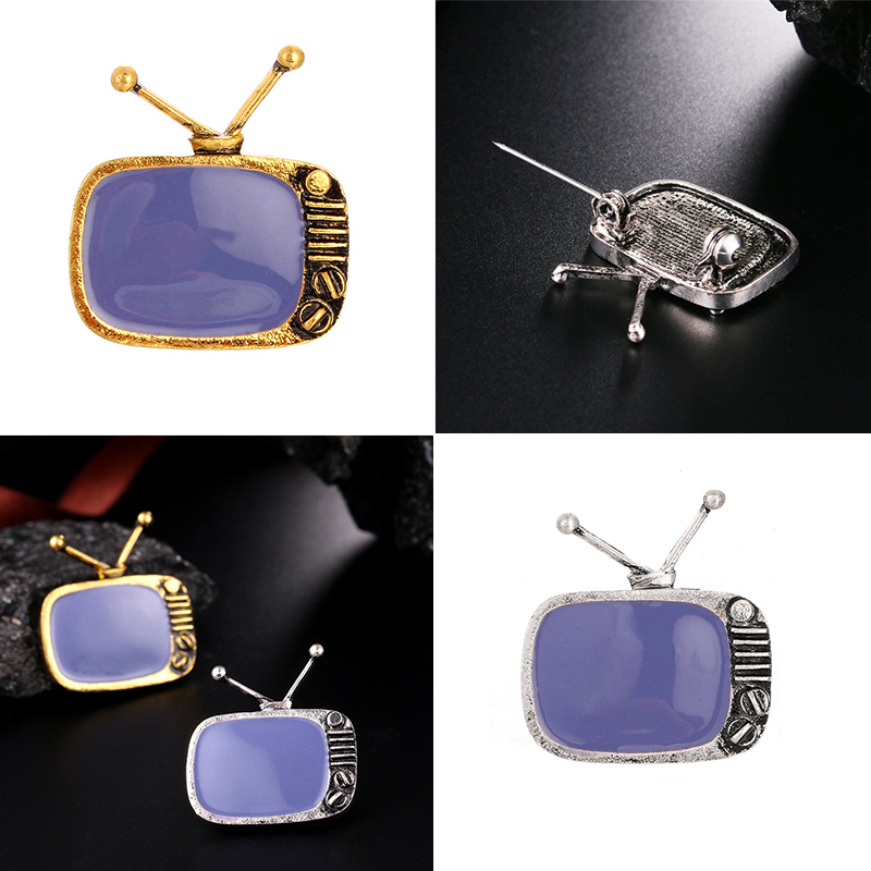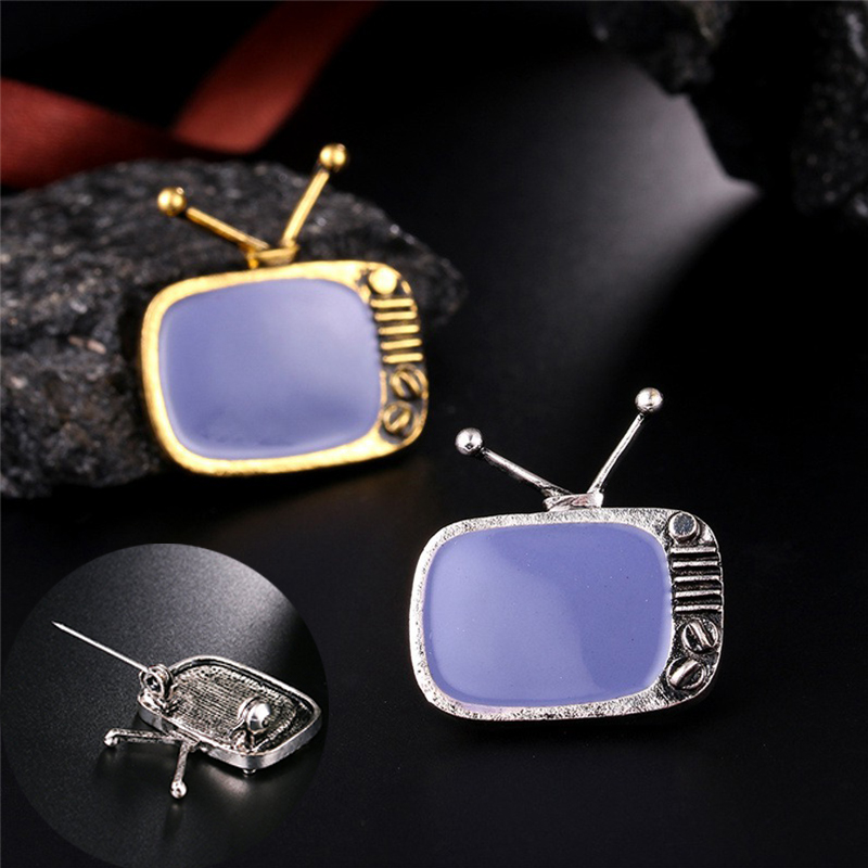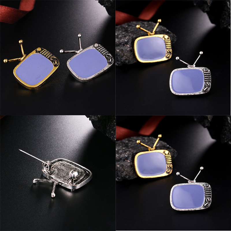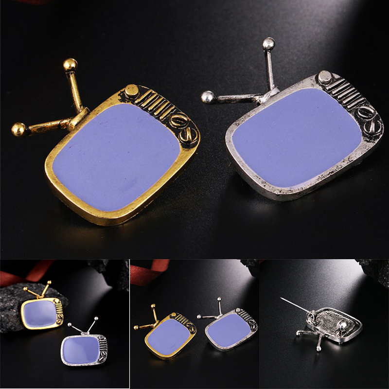 FUNMOR Vintage Cable Television Shape Alloy Brooches Gray Enamel Nostalgic TV Brooch Pins Women Men Souvenir Party Badge Jewelry