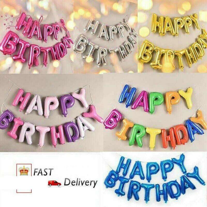 Happy Birthday Balloons Banner Bunting Self Inflating Decoration Letters Balloon