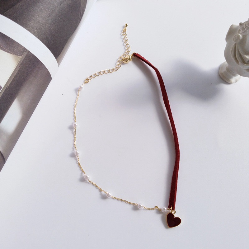 Heart Pendant Pearls Necklace Short Necklaces Women Jewelry Lover Accessories