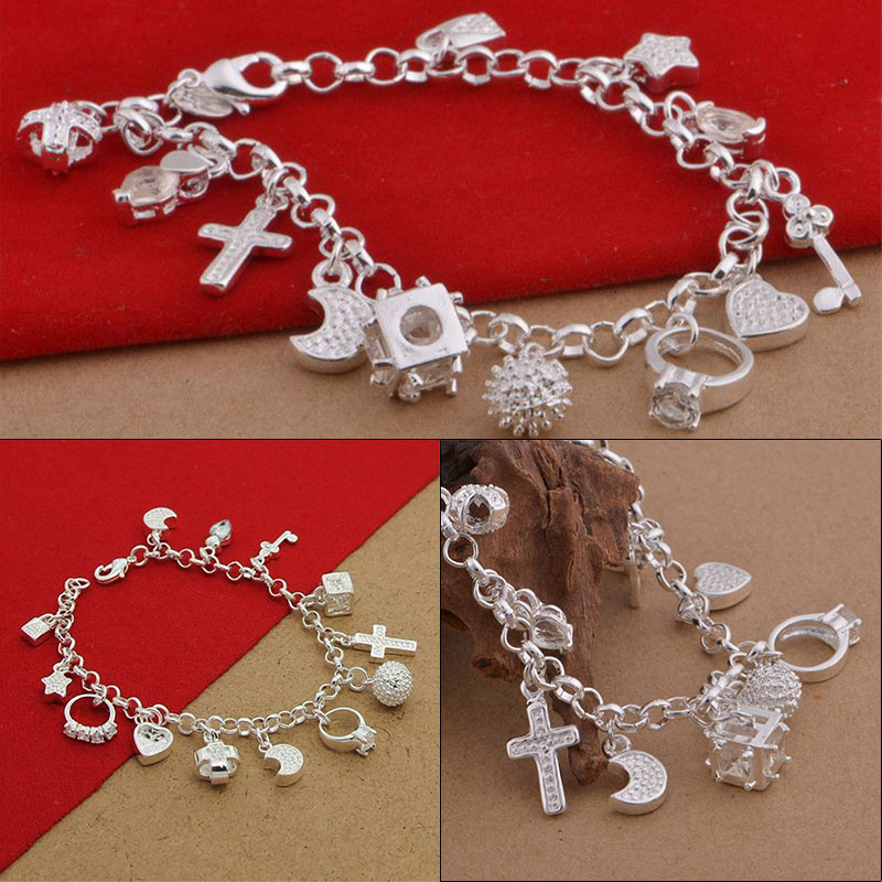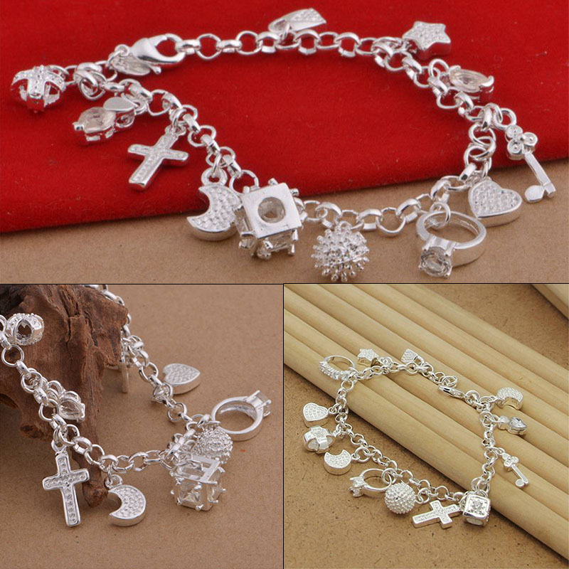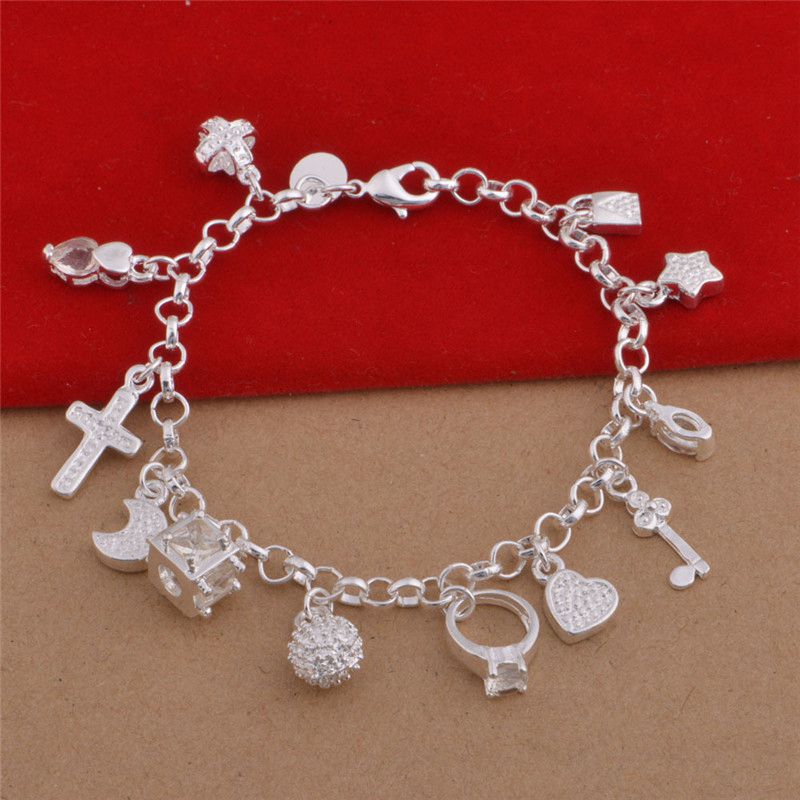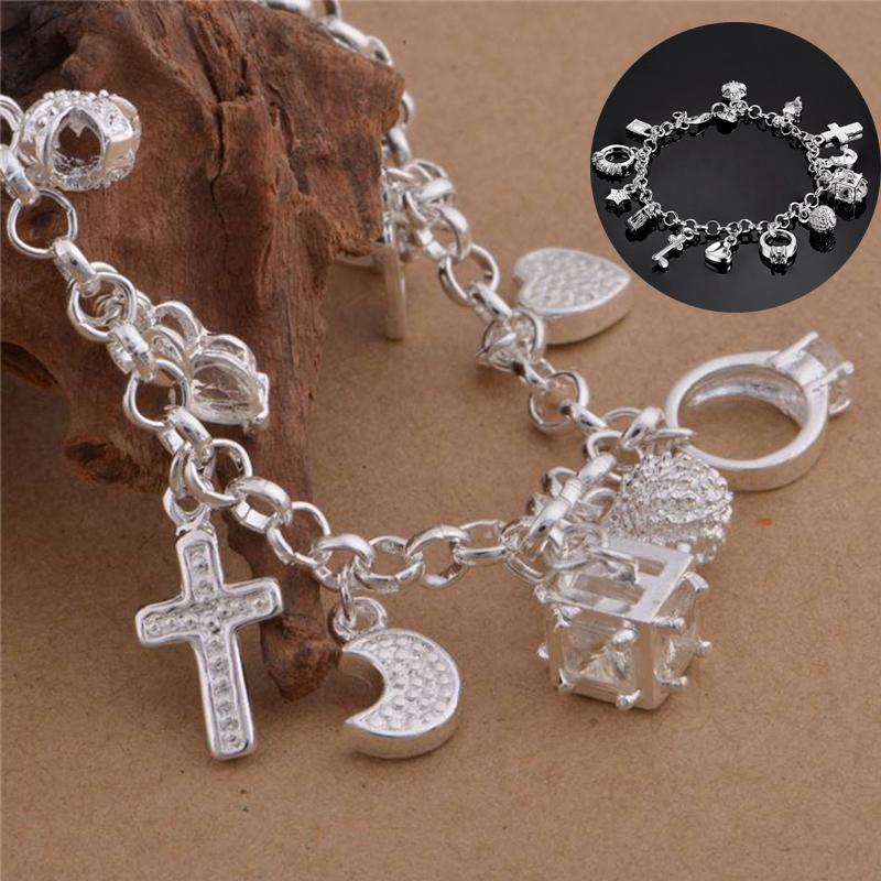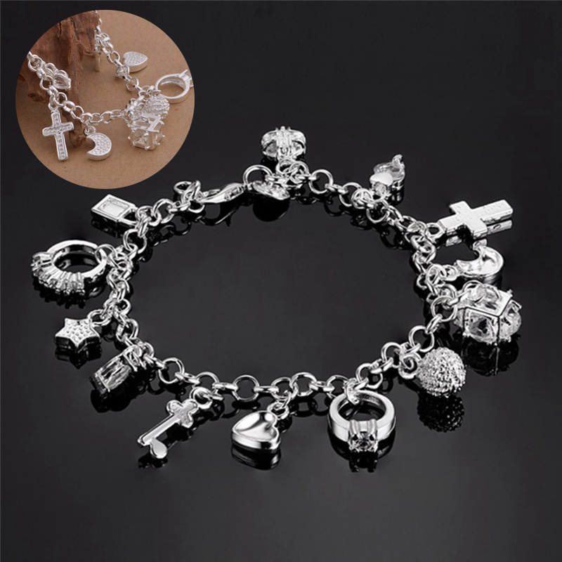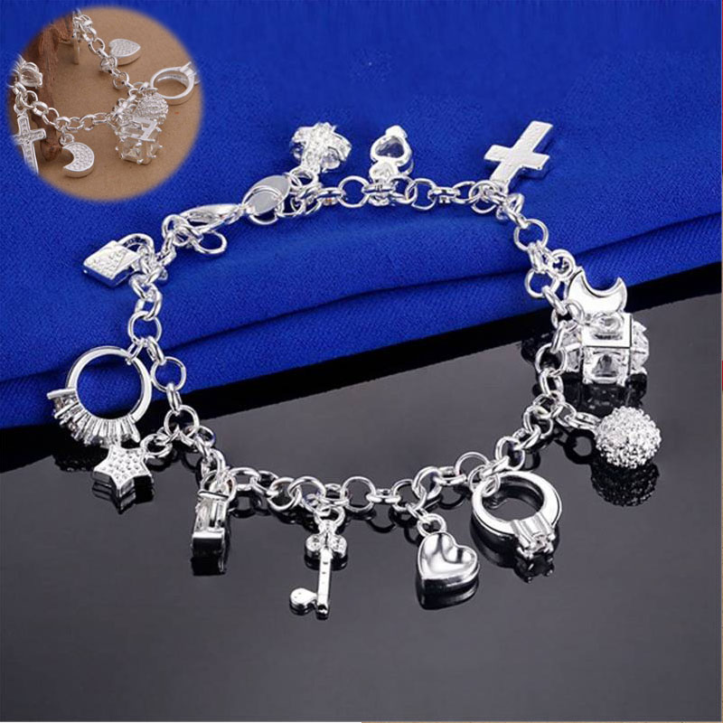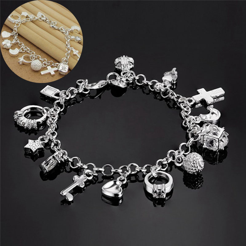 High Quality Silver Bracelet With Multiple Pendant Zircon Bracelets For Women’S Party Charm Jewelry Gift