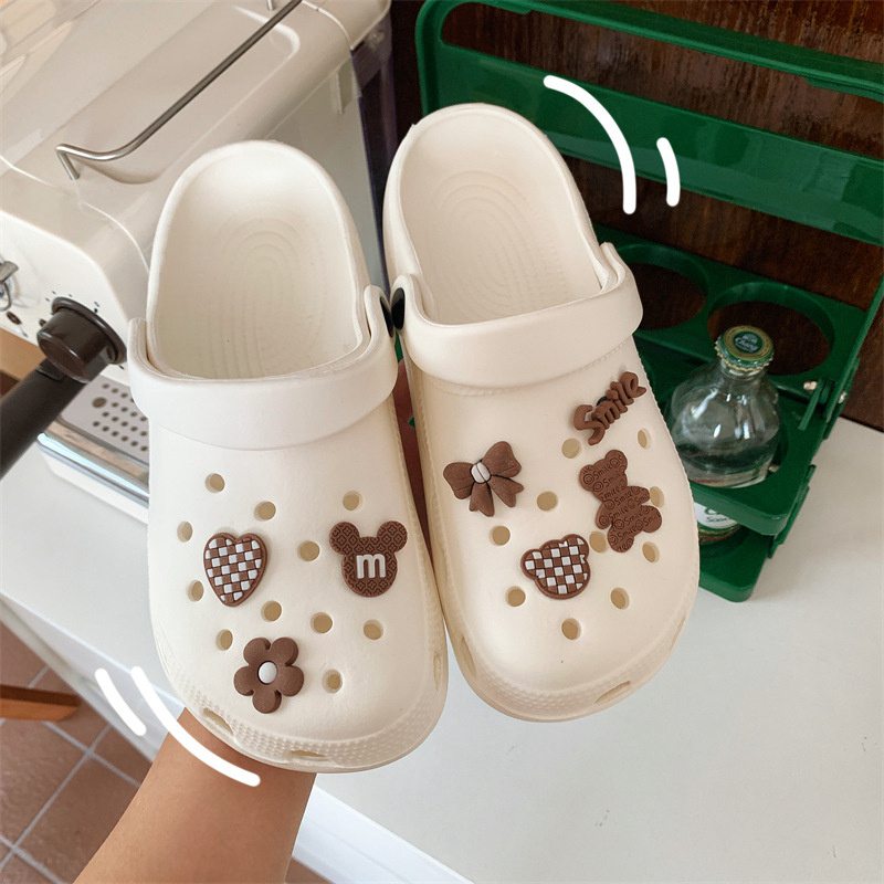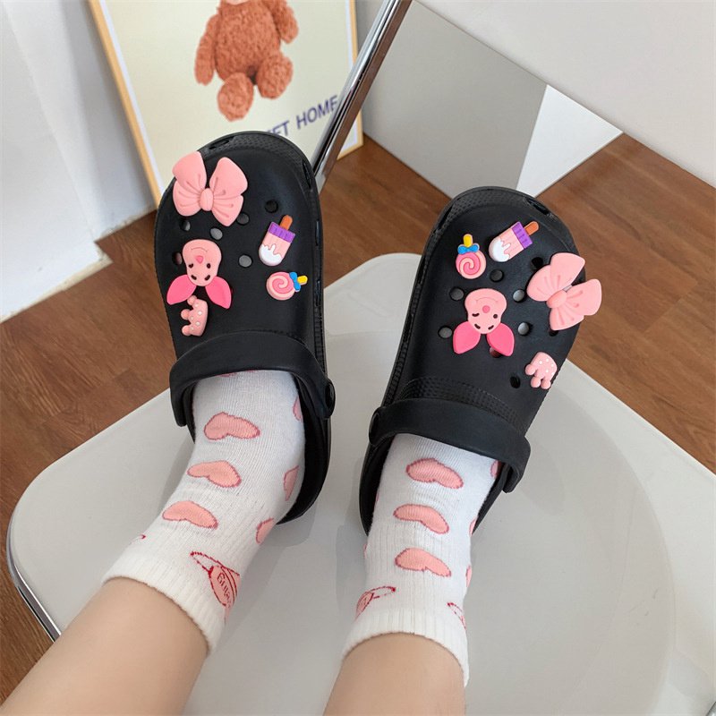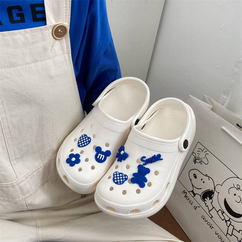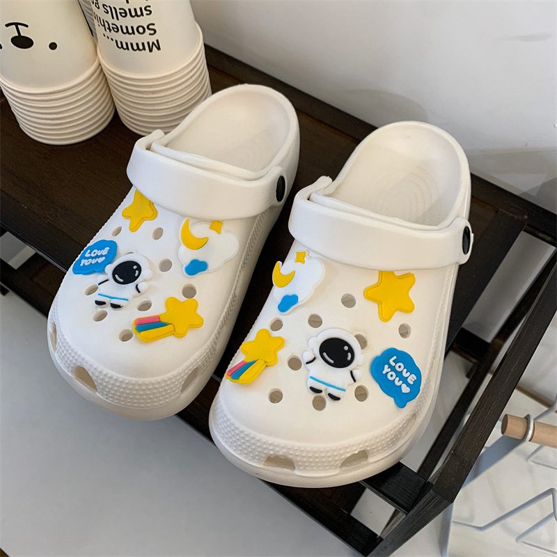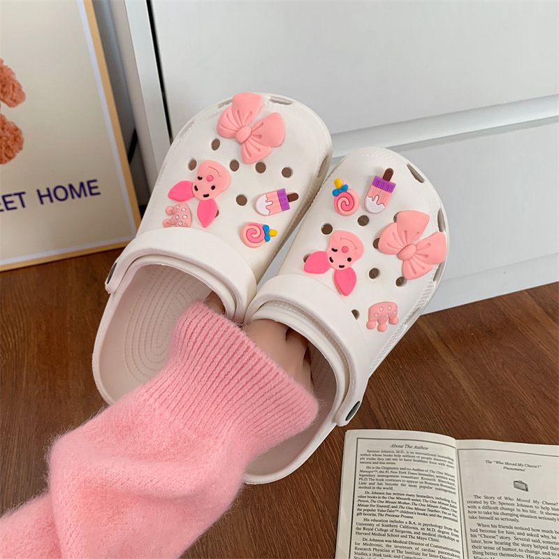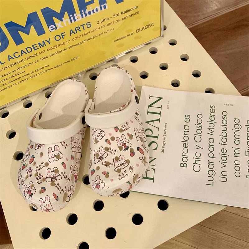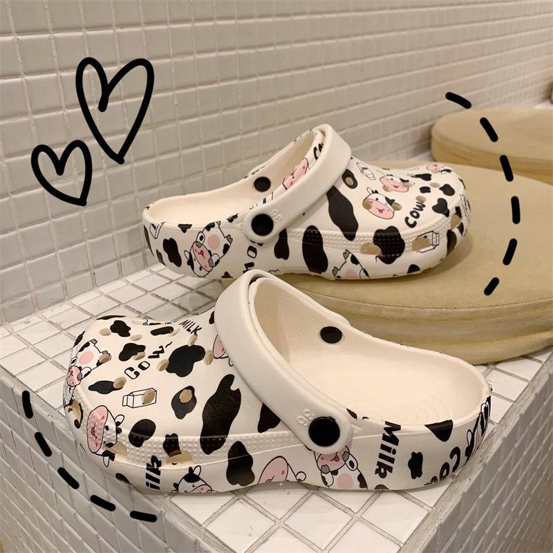 Hole Shoes Ins Girl’s Heart Feeling of Shit Cute Cartoon Cow Toe Box Soft Bottom Thick Bottom for Outdoors Sandals Women’s Summer