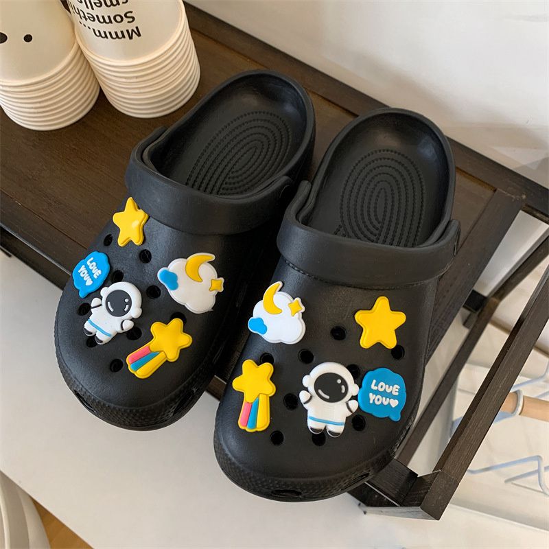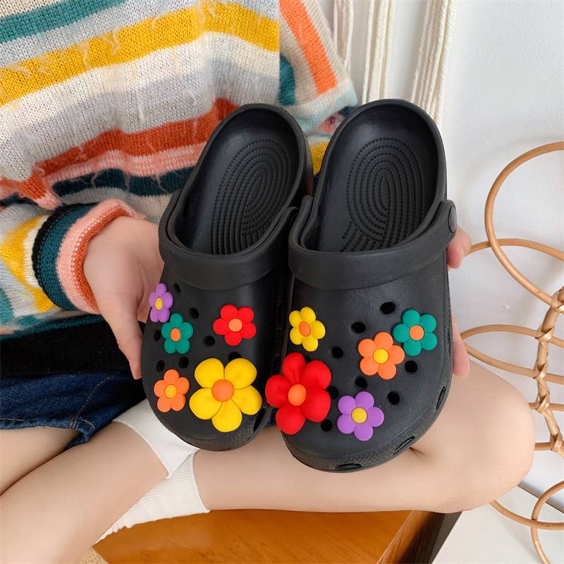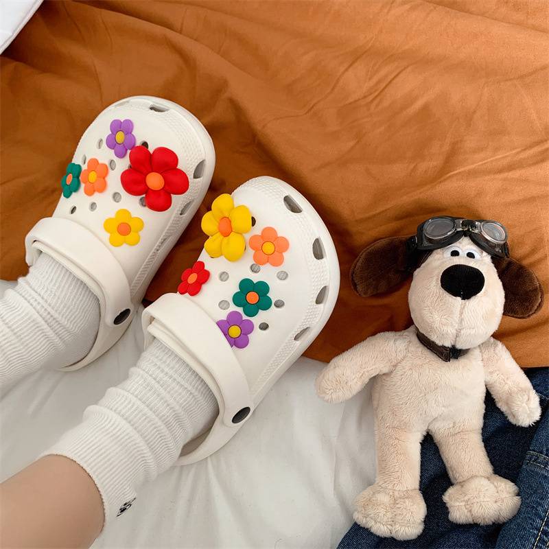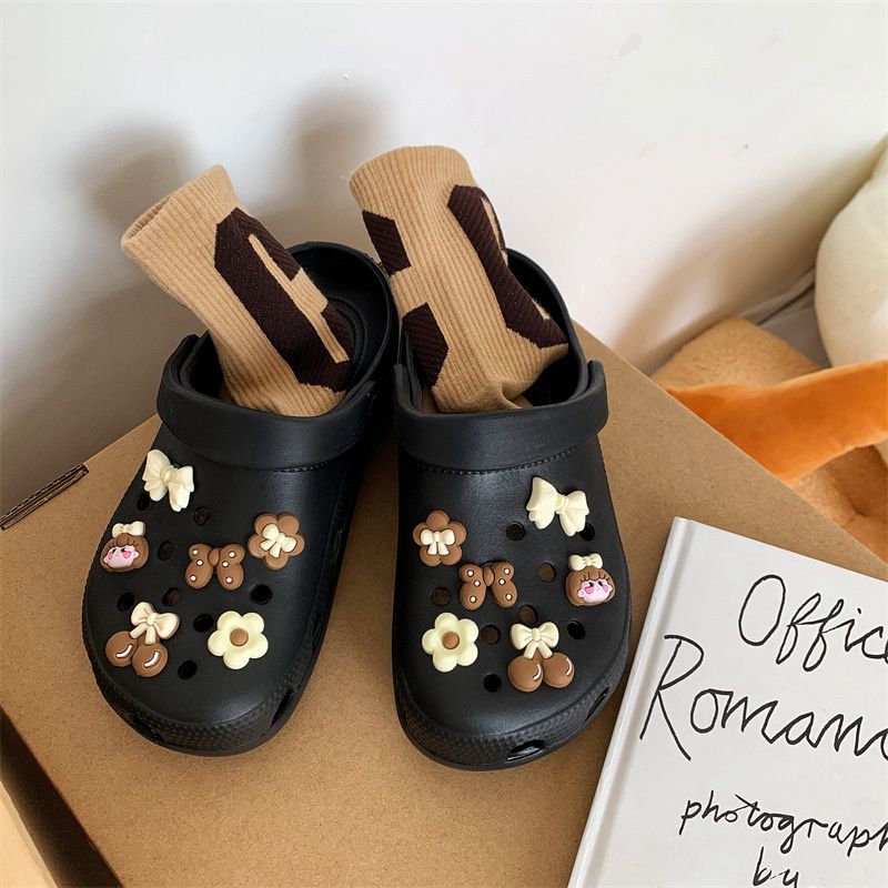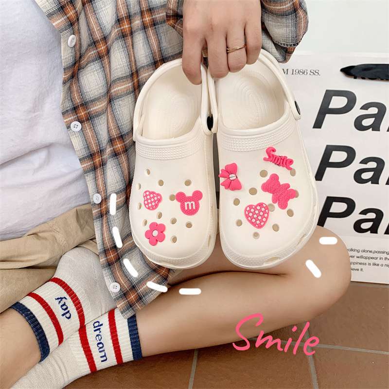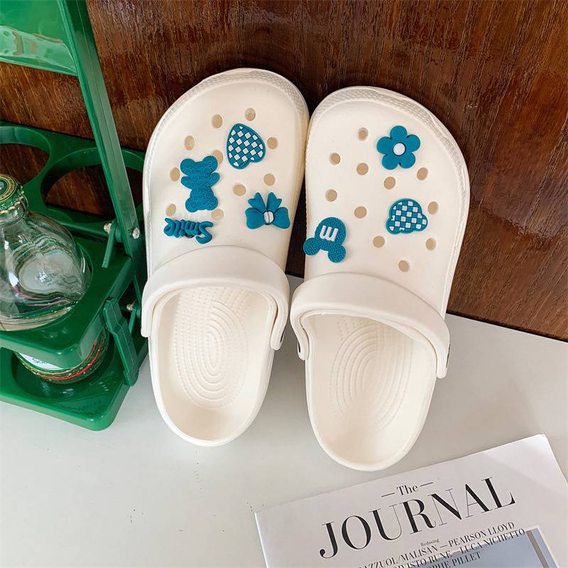 Hole Shoes Ins Girl’s Heart Feeling of Shit Cute Cartoon Cow Toe Box Soft Bottom Thick Bottom for Outdoors Sandals Women’s Summer