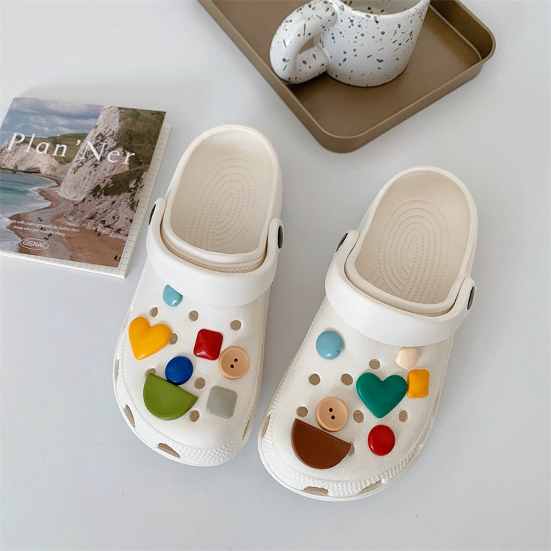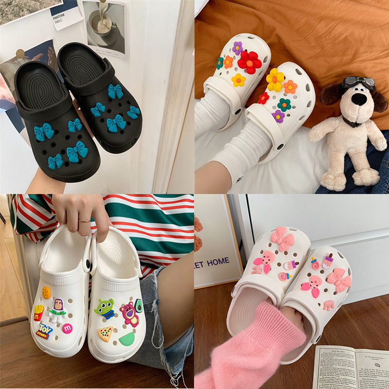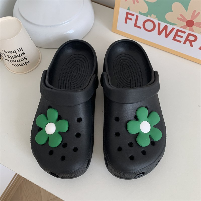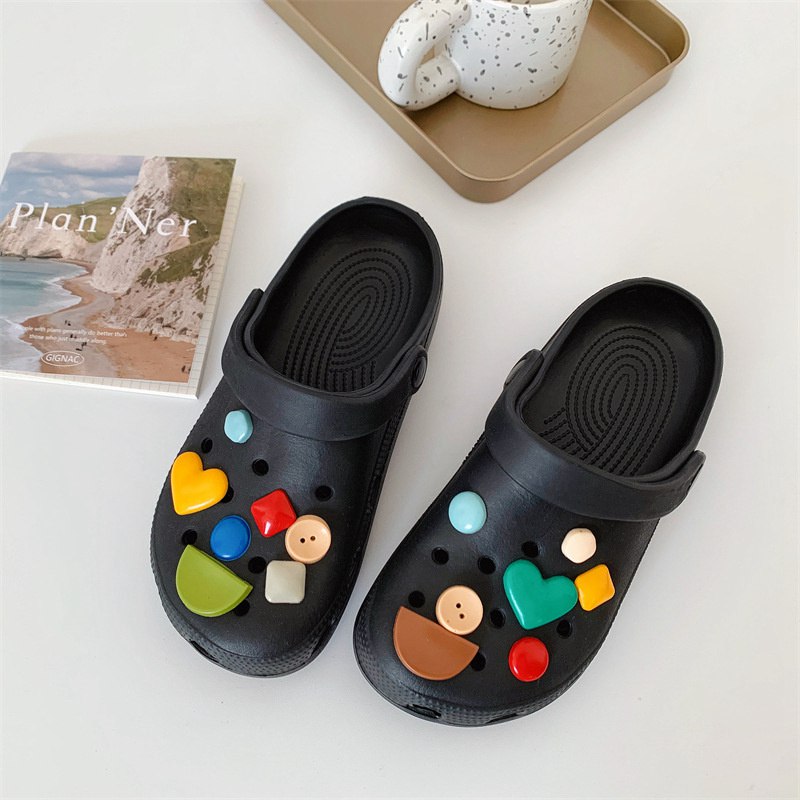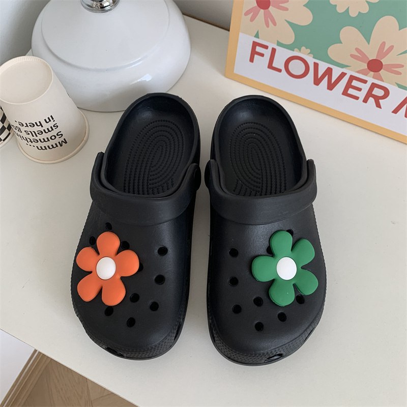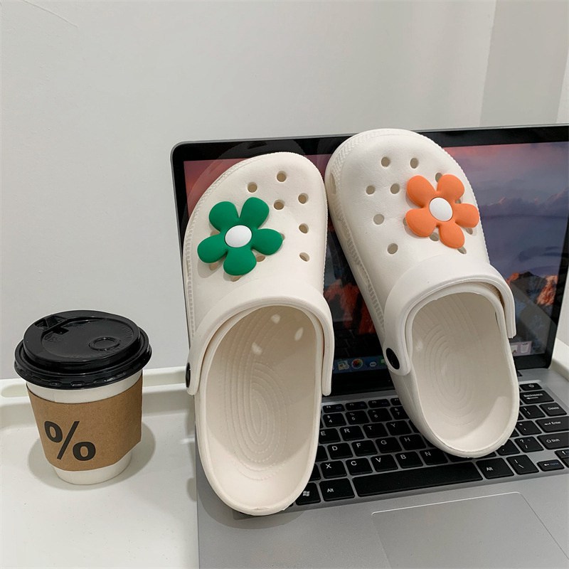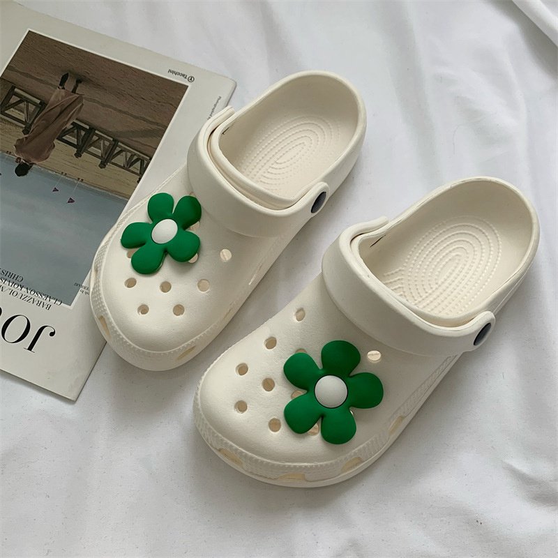 Hole Shoes Ins Girl’s Heart Feeling of Shit Cute Cartoon Cow Toe Box Soft Bottom Thick Bottom for Outdoors Sandals Women’s Summer