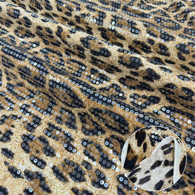 Knitted Leopard Print Transparent Sequined Fabric DIY Clothing Accessories Sequined Cloth