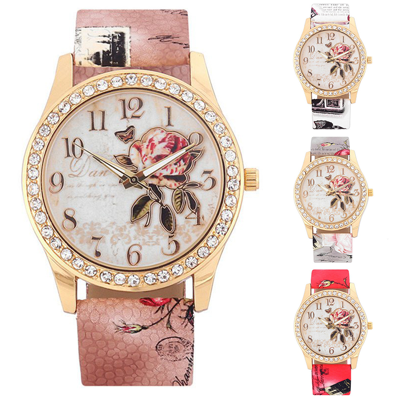 Ladies Girls Watch Crystal Quartz Womens Analogue Dress Leather Casual Gift