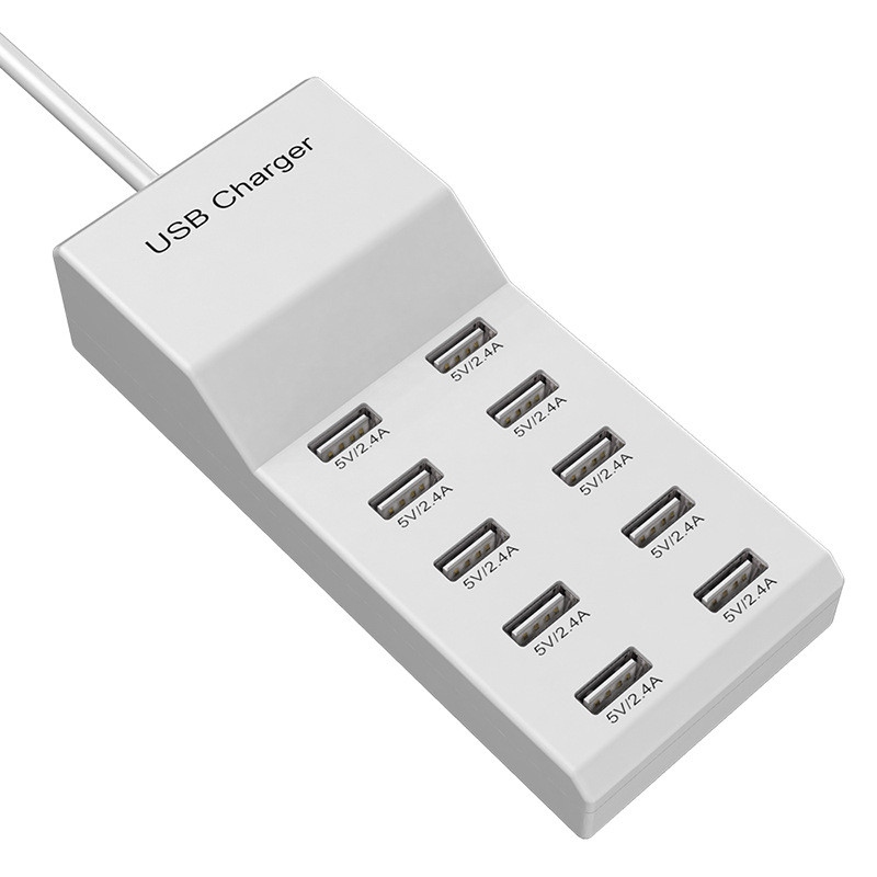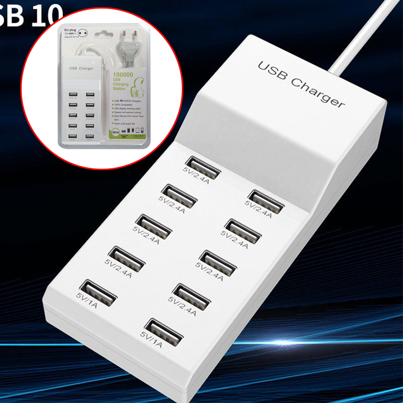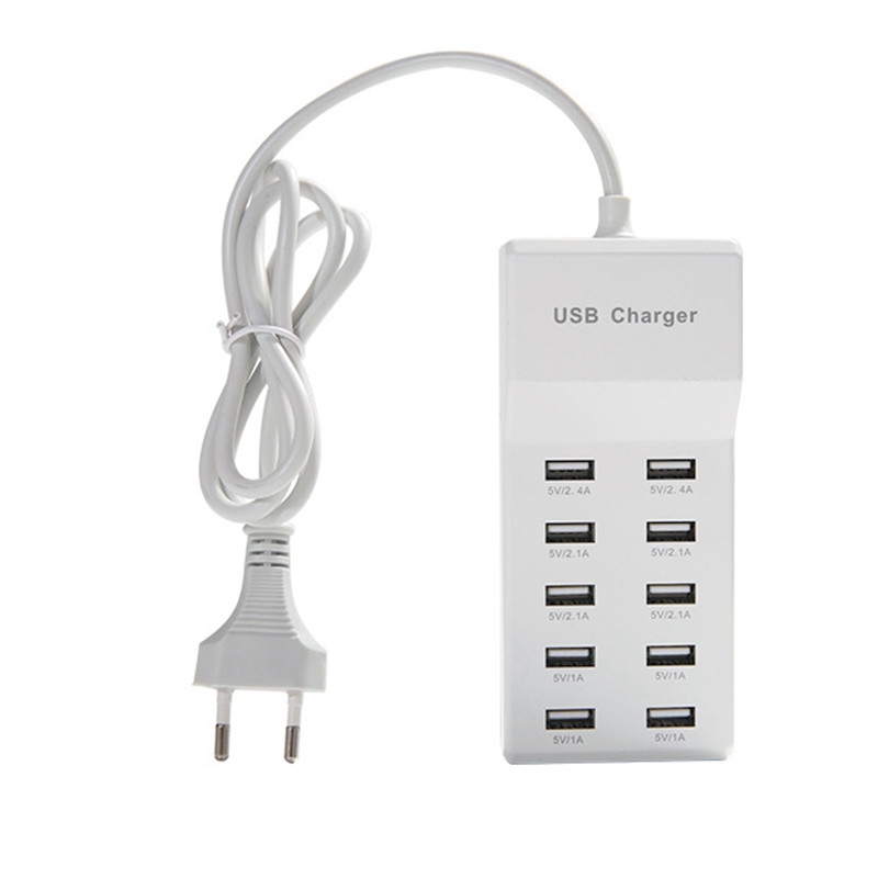 Mains 10 Pin Plug Adapter Wall Charger 10 Port Dual USB For Phones Tablets