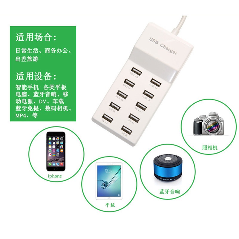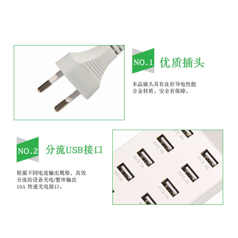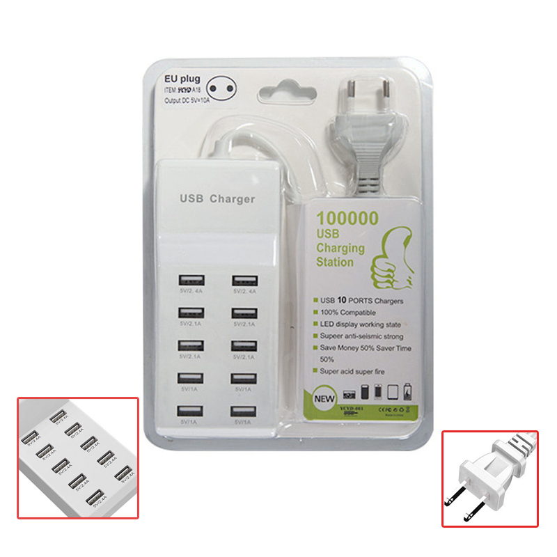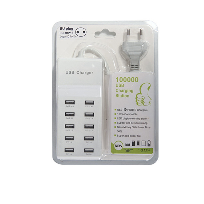 2. Output: DC 5V / 10A (5-port USB, the maximum support of single port is 2.4a, and it is recommended to use within 8A normally)