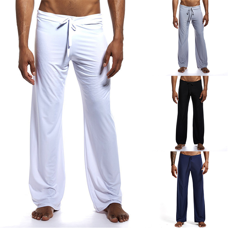 Men Casual Solid Color Low-waisted Drawstring Loose Pants Running Yoga Trousers