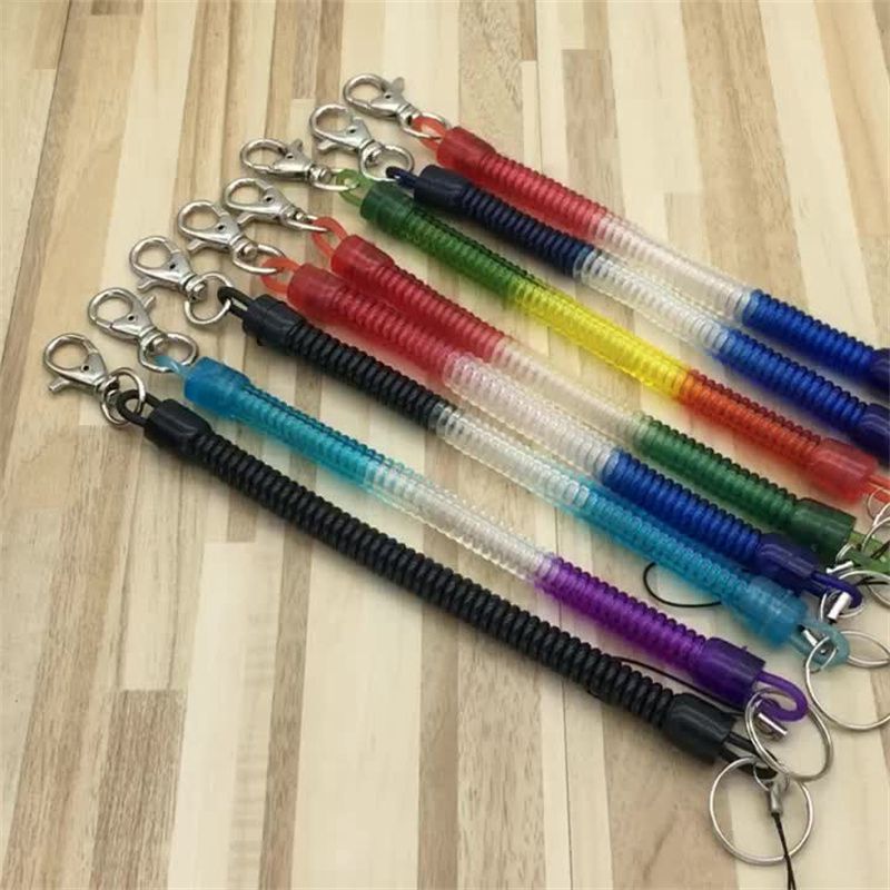 Metal Keychains Spring Rope Black Plastic Elastic String Color Retractable Rope Mobile Phone Key Anti-Lost Hanging Buckle Wholesale
