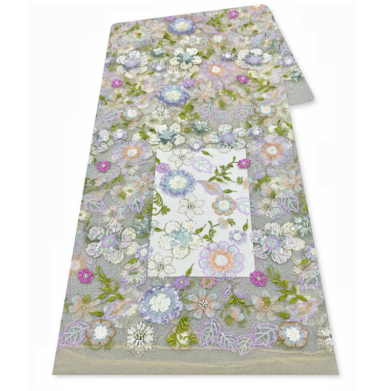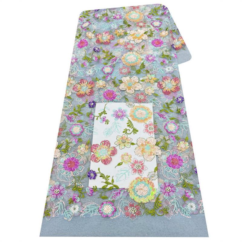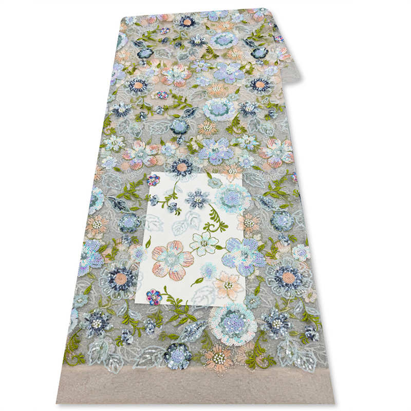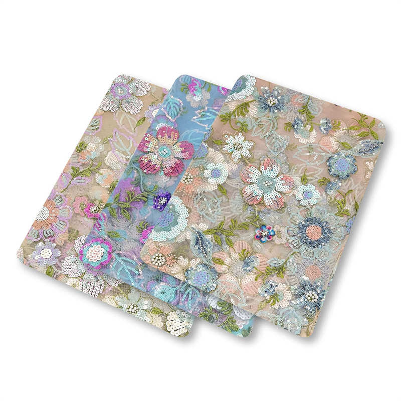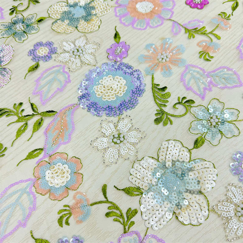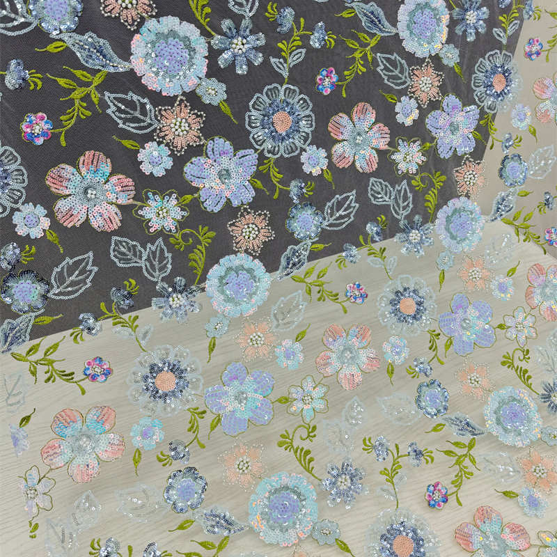Multi-Color Floral Embroidery Lining Sequins Pearl Embroidery Wedding Dress Fabric