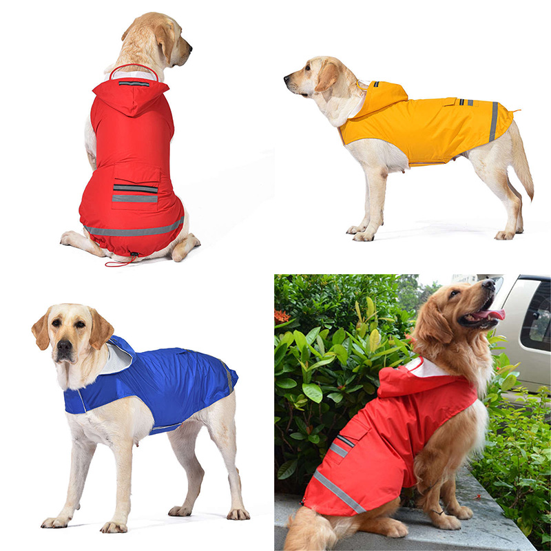 Pet Raincoat Double-Layer Big Dog Reflective Stripe Dog Clothes Dog Raincoat