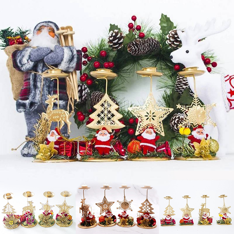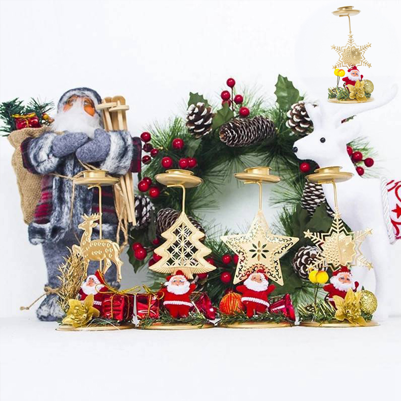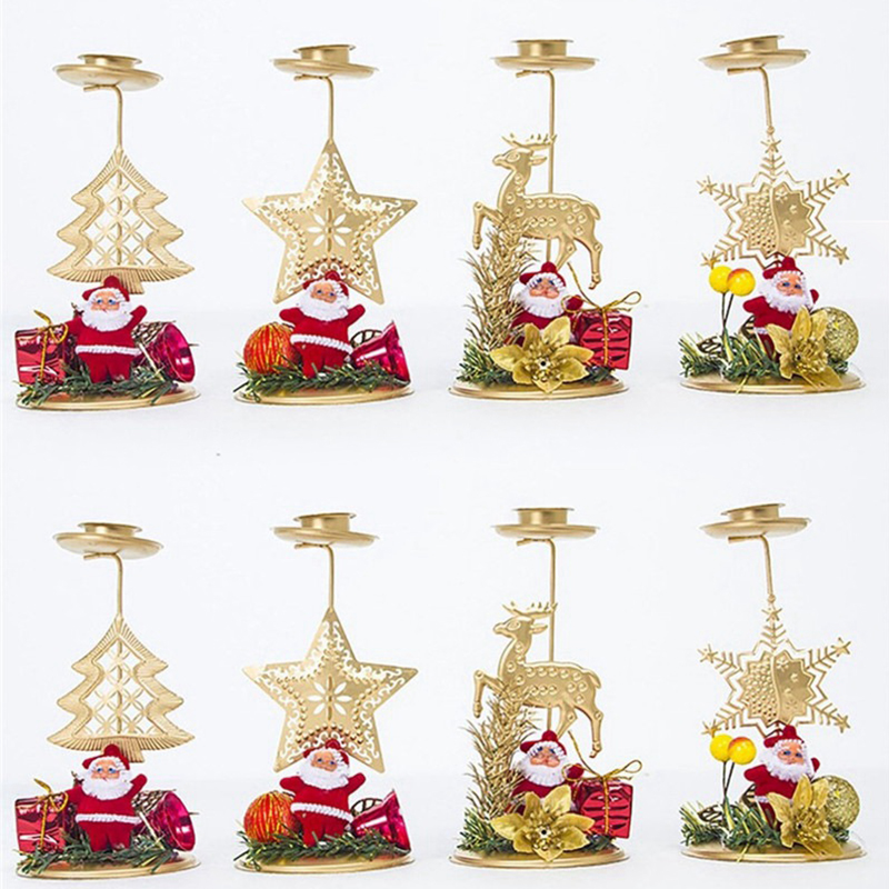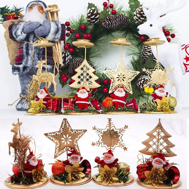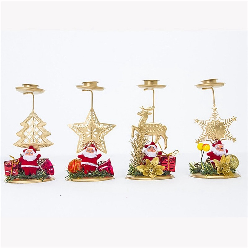 Santa Claus Snowflake Star Christmas Candlestick Iron Candle Ornament Gift Desktop Candle Holder For Xmas Table Decoration Gold