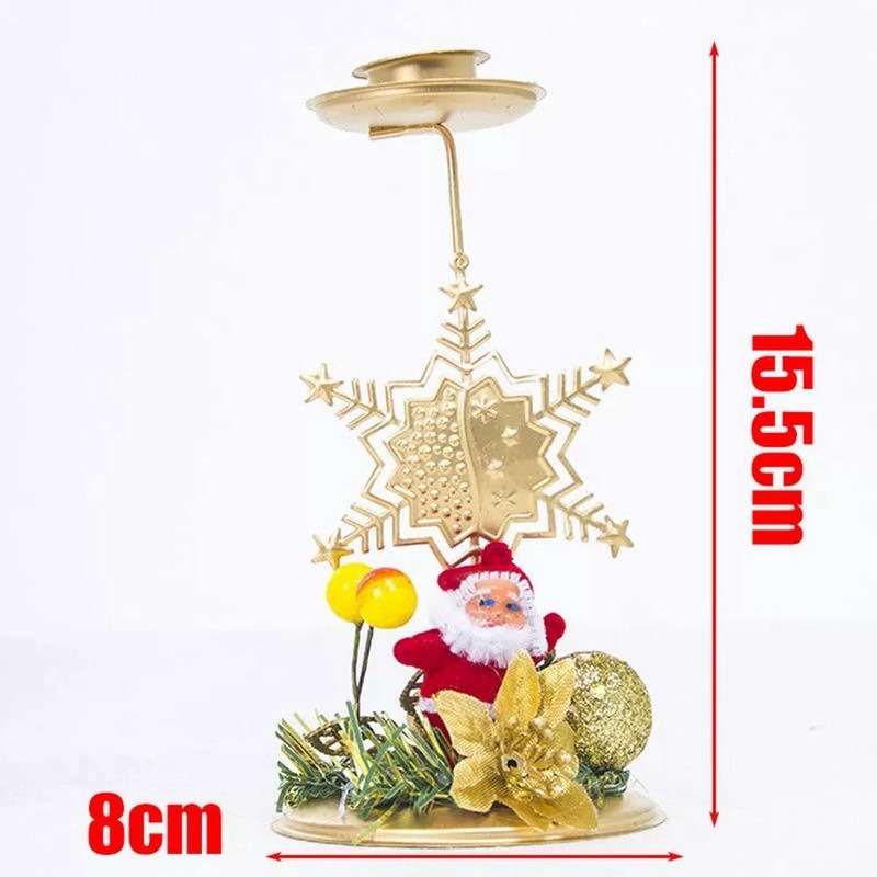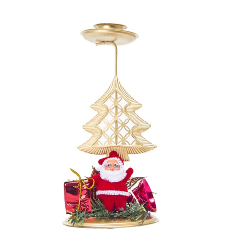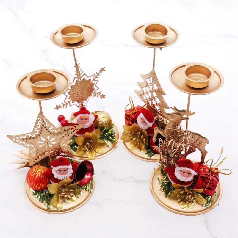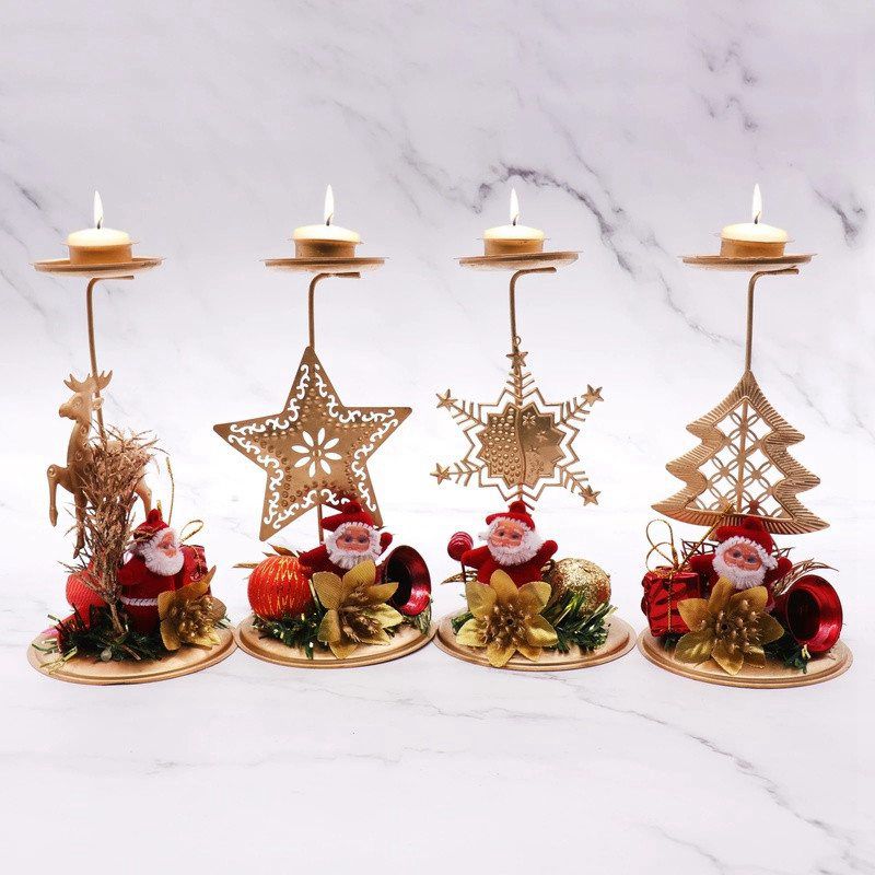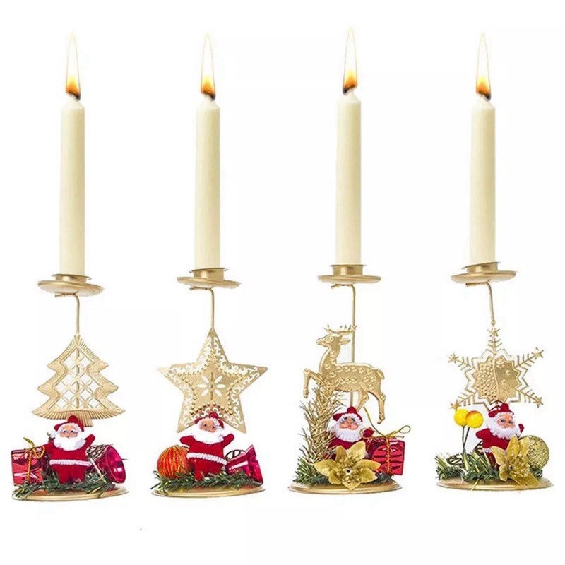 Santa Claus Snowflake Star Christmas Candlestick Iron Candle Ornament Gift Desktop Candle Holder For Xmas Table Decoration Gold