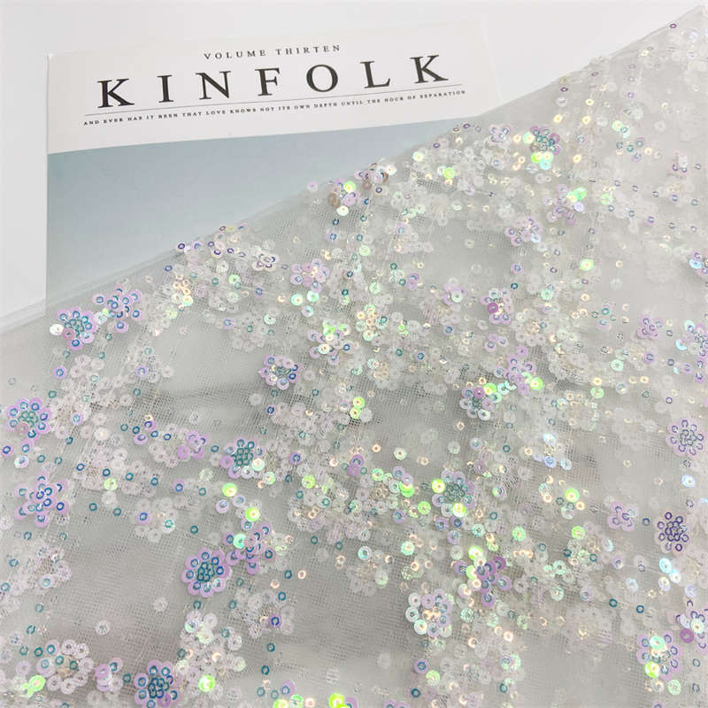 Sequin Tulle Fabric Sequined Plaid Dreamy Glitter Decor Fabric DIY Fabric