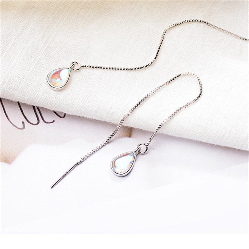 Sterling Silver Threader Pull Through Ear Opal Long Chain Dangle Earrings