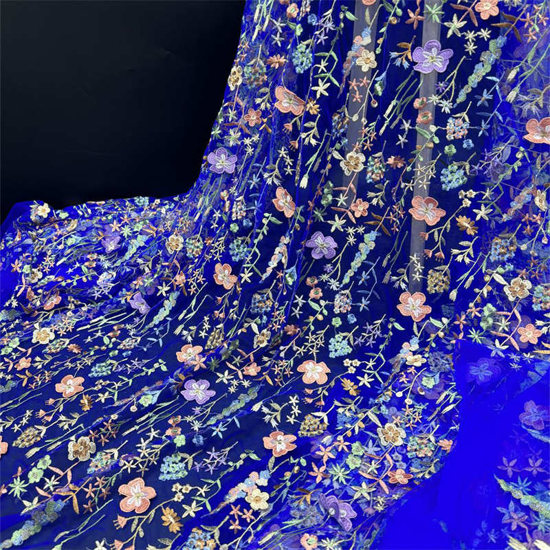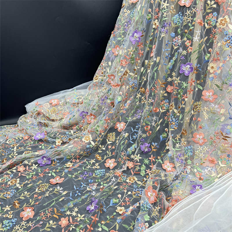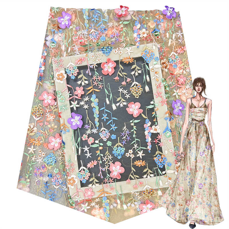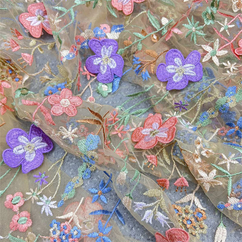 Three-Dimensional Floral Multi-Color 3D Mesh Embroidery Fabric Lace Embroidery Fabric