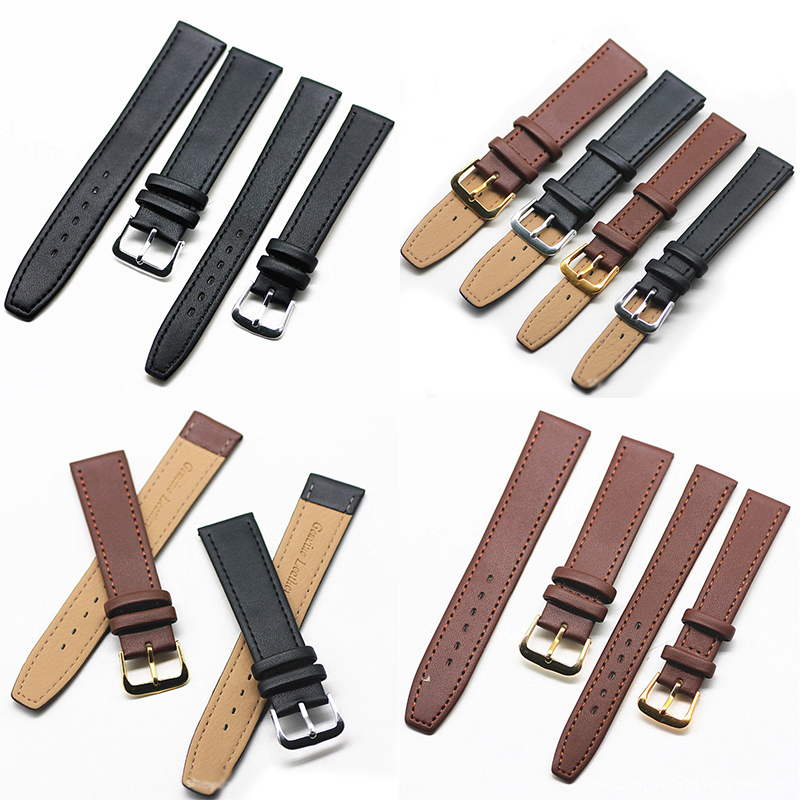 Watch Accessories Ordinary Lengthened Cowhide Glossy Strap Non-Grain Line Pressing Waterproof Calf-Skin Watchband Parts