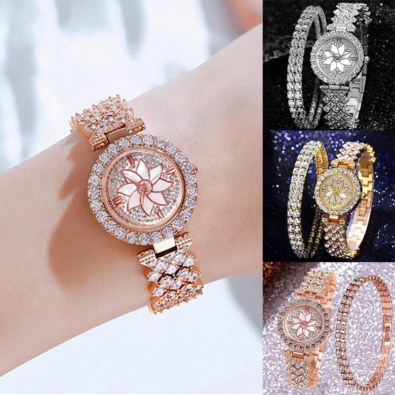 Watch & Bracelet Sets Ladies Women Analogue Wrist Watch Stainless Steel Gift/Box