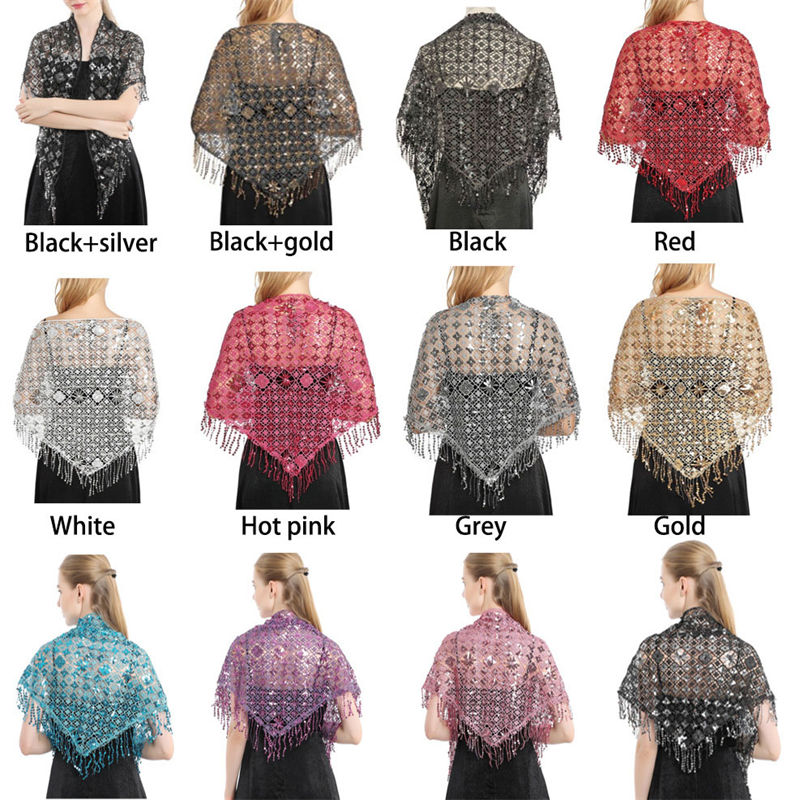 Water Soluble Sequin Tassel Triangular Sequin Shawl Dinner Cheongsam Party Shawl