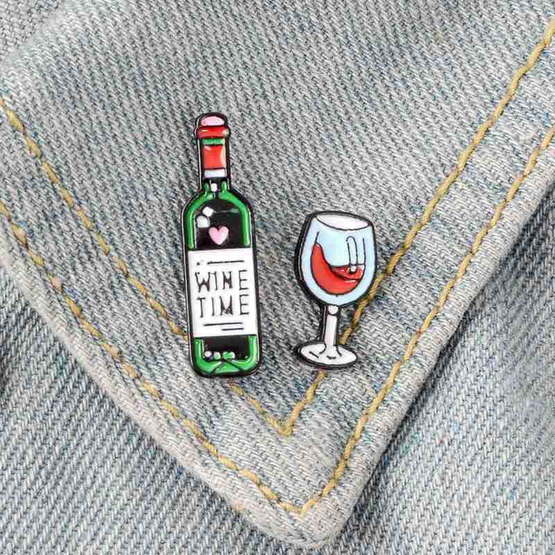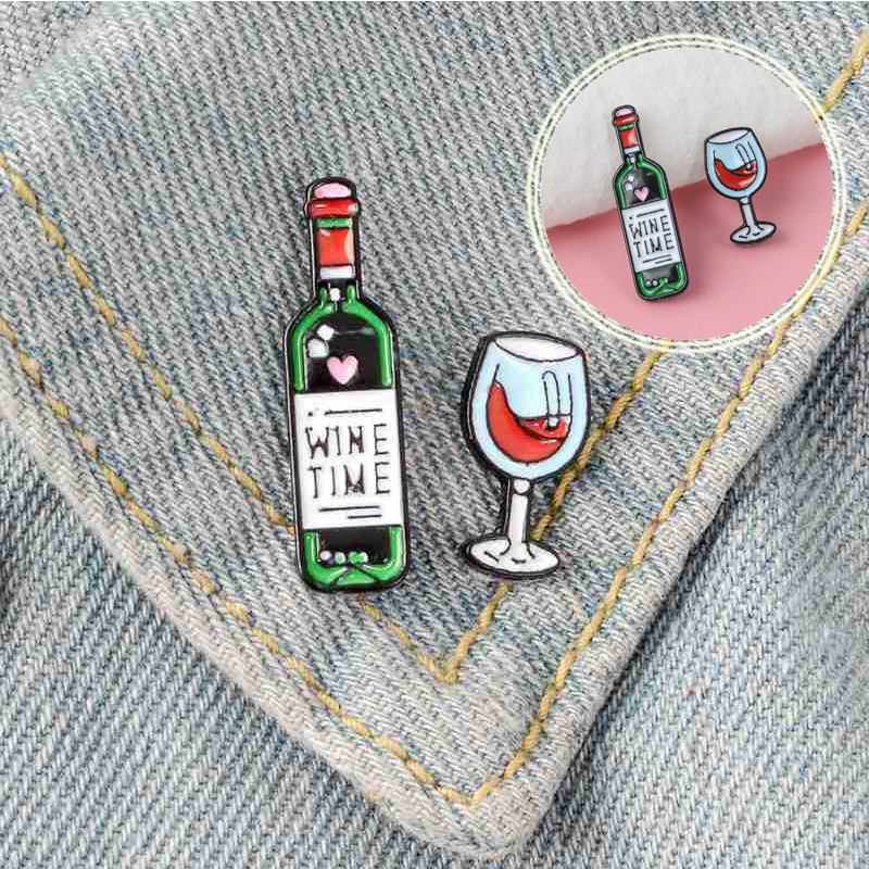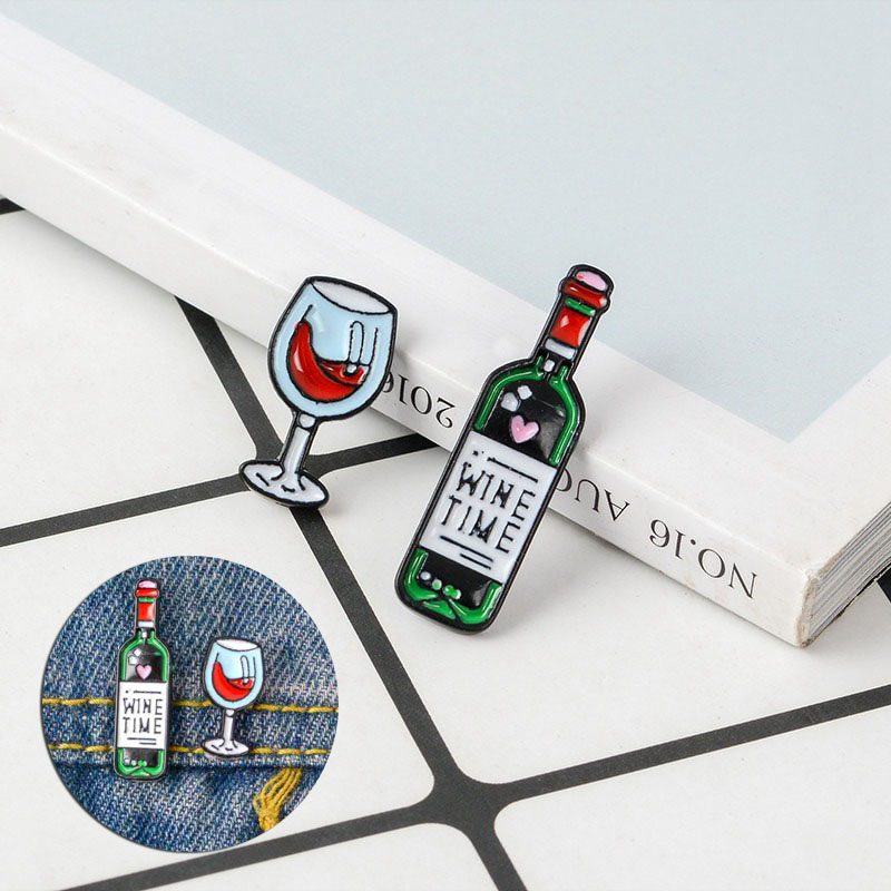 Wine Time Mini Cute Wine And Wine Glasses Couple Pins Red Wine Bottle cup Brooches Enamel Pin Badge For Lovers Best Friend Pins